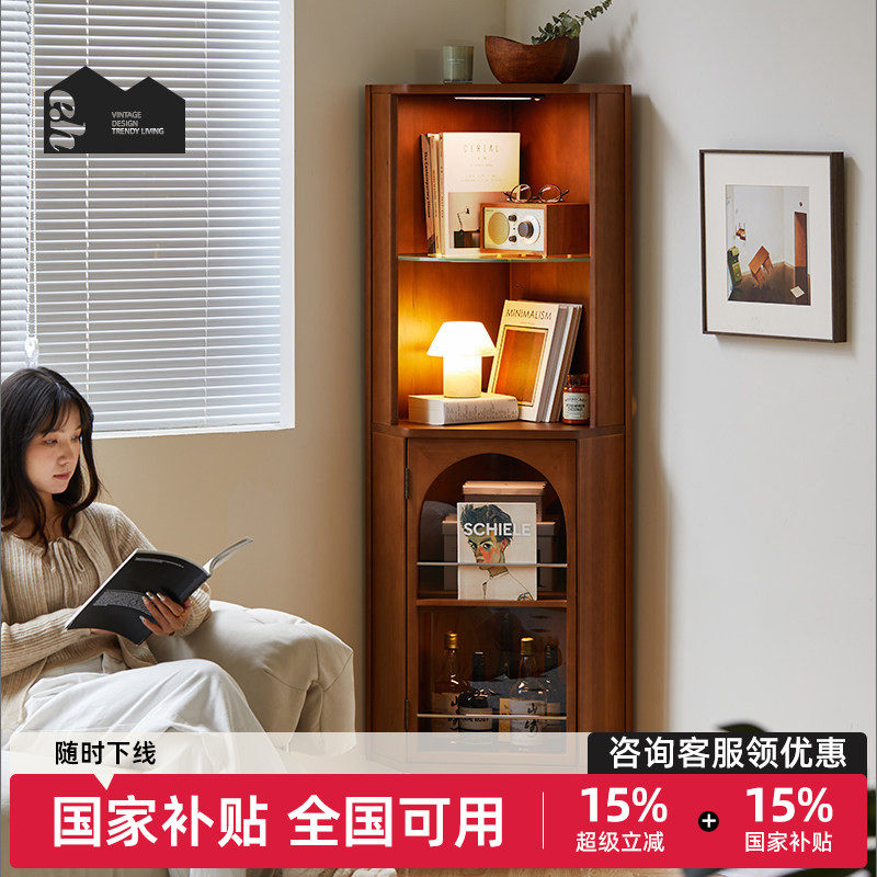 复古风实木转角柜小户型客厅墙角柜沙发边柜复古卧室收纳储物柜