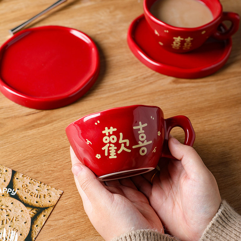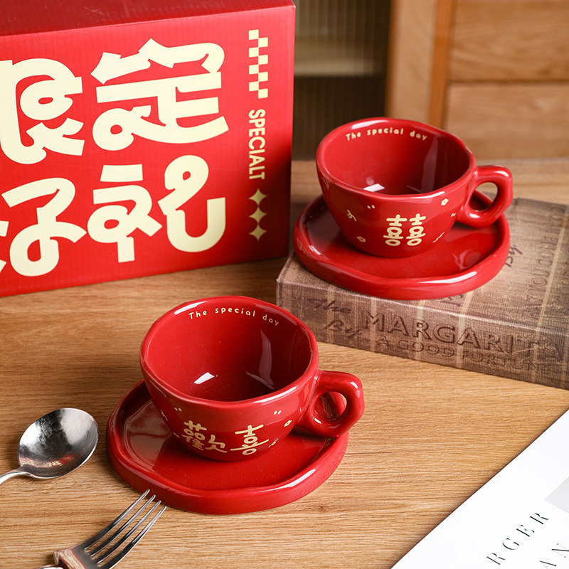 舍里中式陶瓷马克杯家用一对水杯结婚喜庆送人新婚实用礼物伴手礼