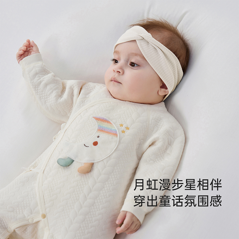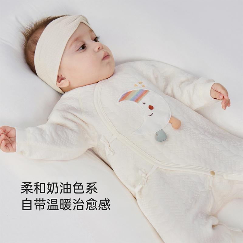 婧麒新生儿婴儿衣服秋冬夹棉满月纯棉初生宝宝秋装连体衣a类爬服