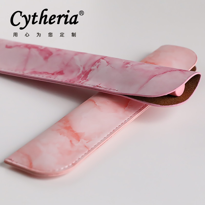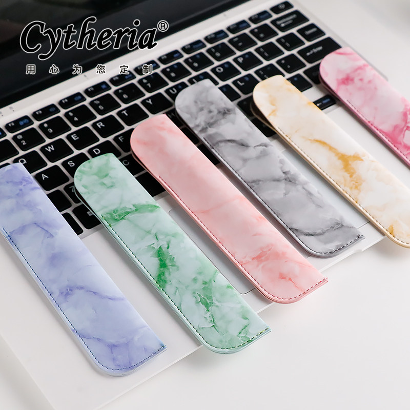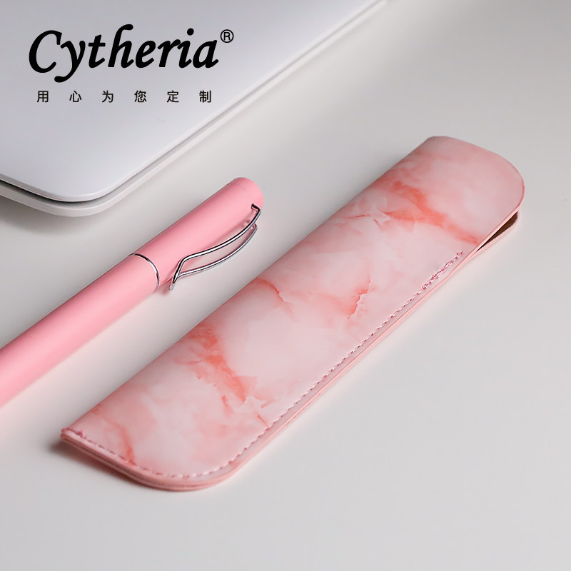 包邮轻奢简约大理石纹pu笔袋女人男士学生礼品文具双支套装刻字