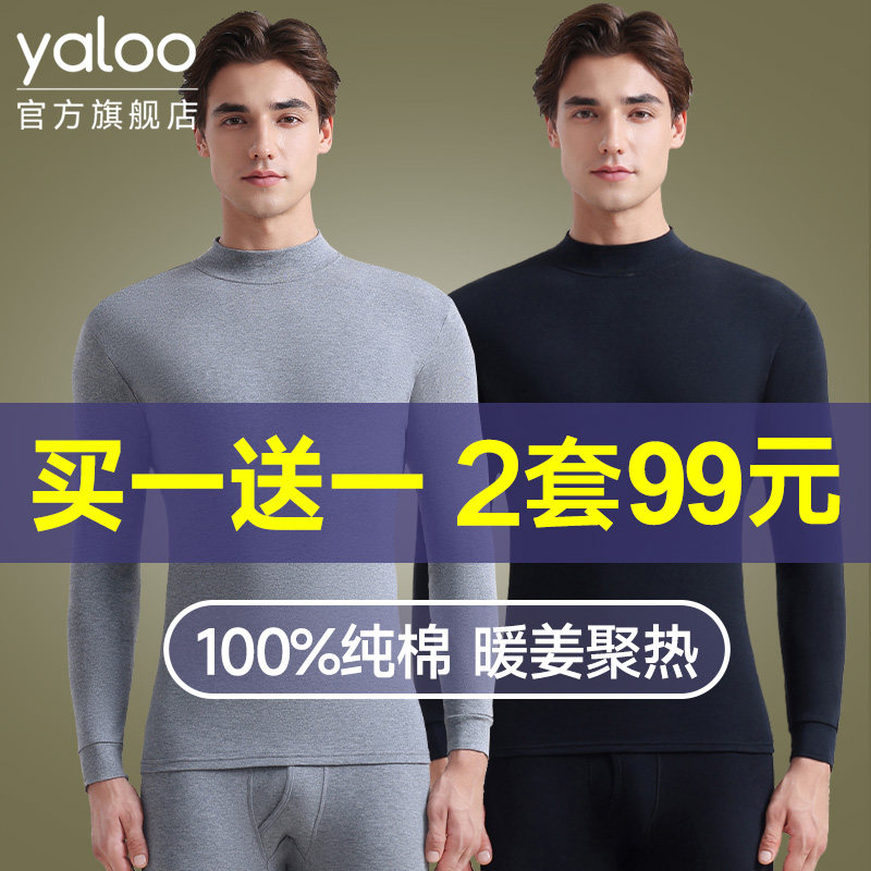 雅鹿纯棉保暖内衣男士秋衣裤秋裤套装男款中领全棉贴身棉毛衫冬季