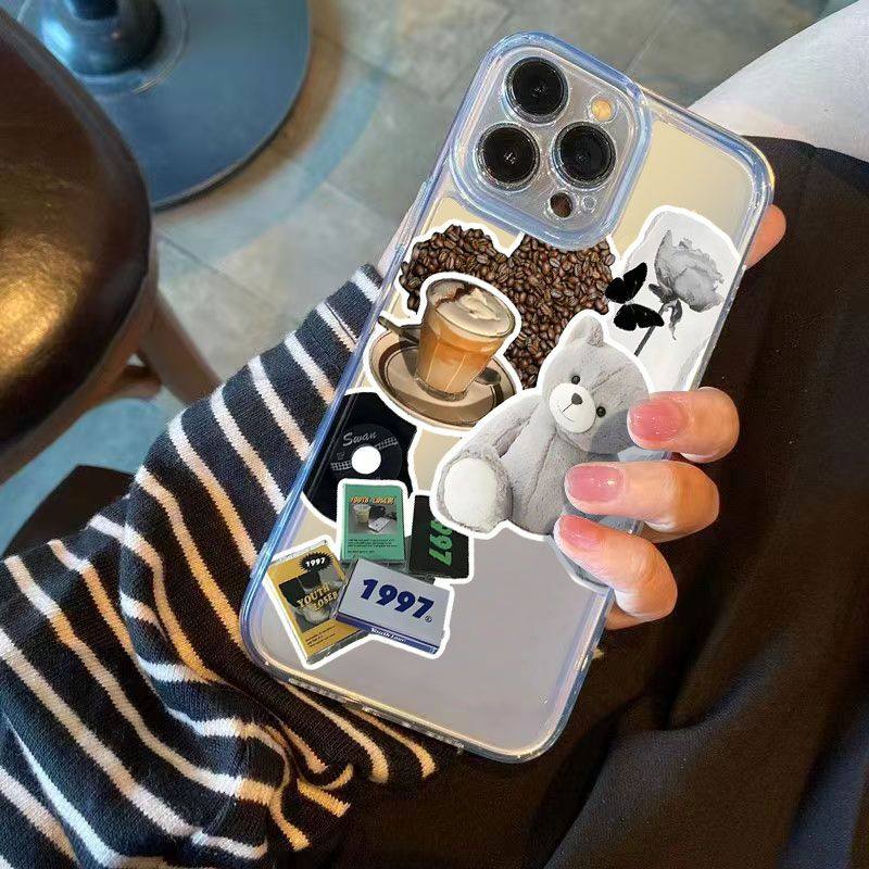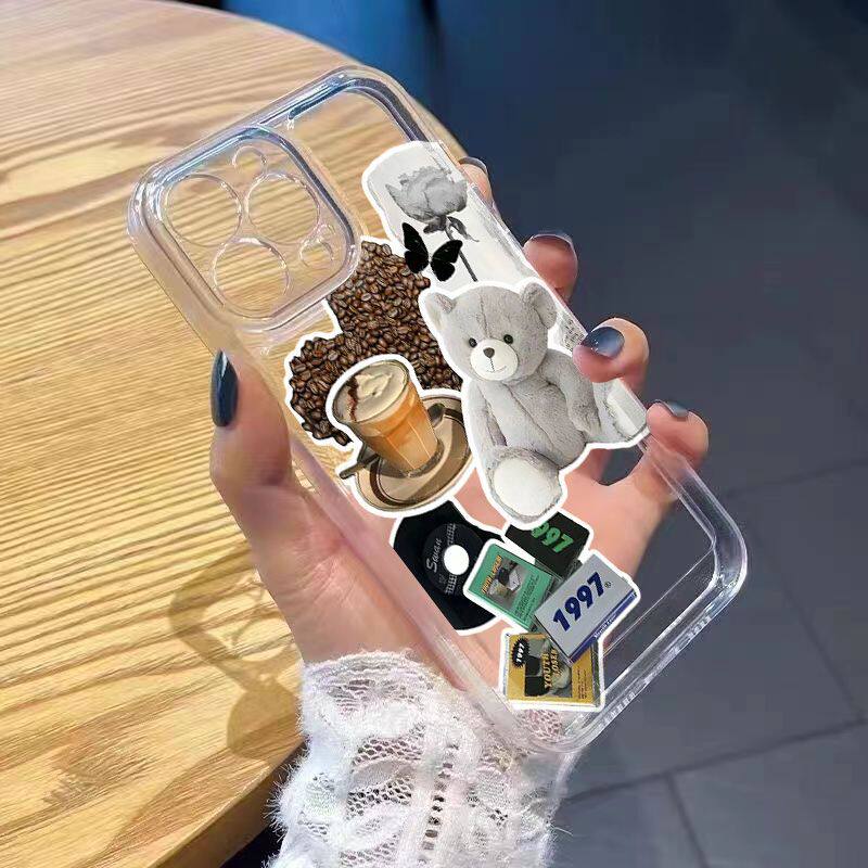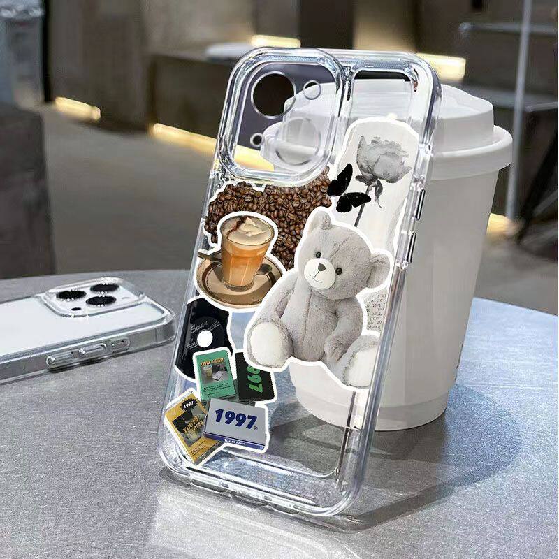 咖啡小熊标签适用于苹果16/15pro手机壳14promax新款13mini全包iphone12/11软xs/xr防摔6/7/8plus男女保护套