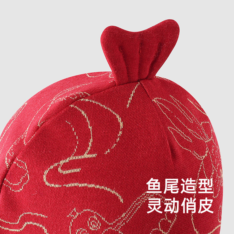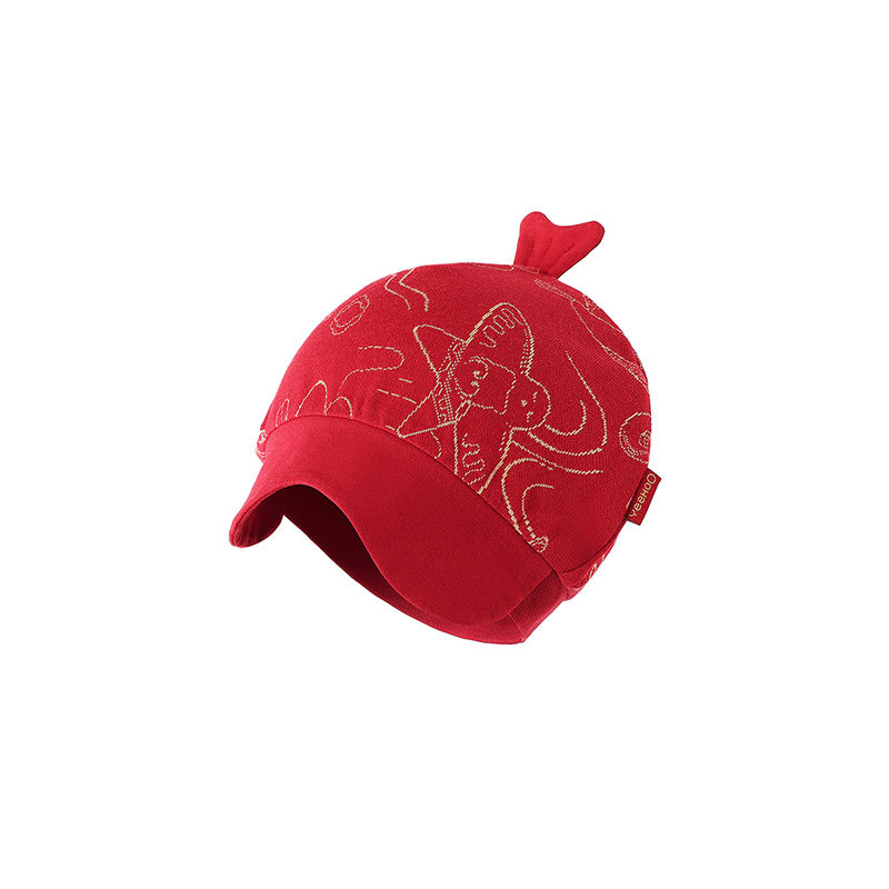 【商场同款】英氏婴儿帽子满月新年红色夏季新生胎帽宝宝喜庆圆帽