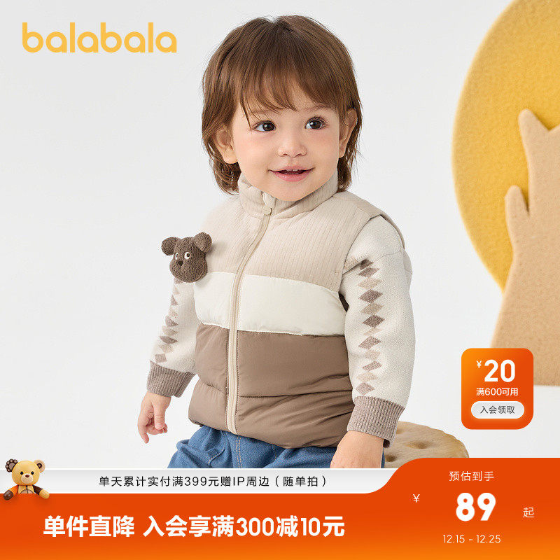 巴拉巴拉宝宝马甲冬装婴儿背心外穿男童拼接撞色时髦洋气帅气有型