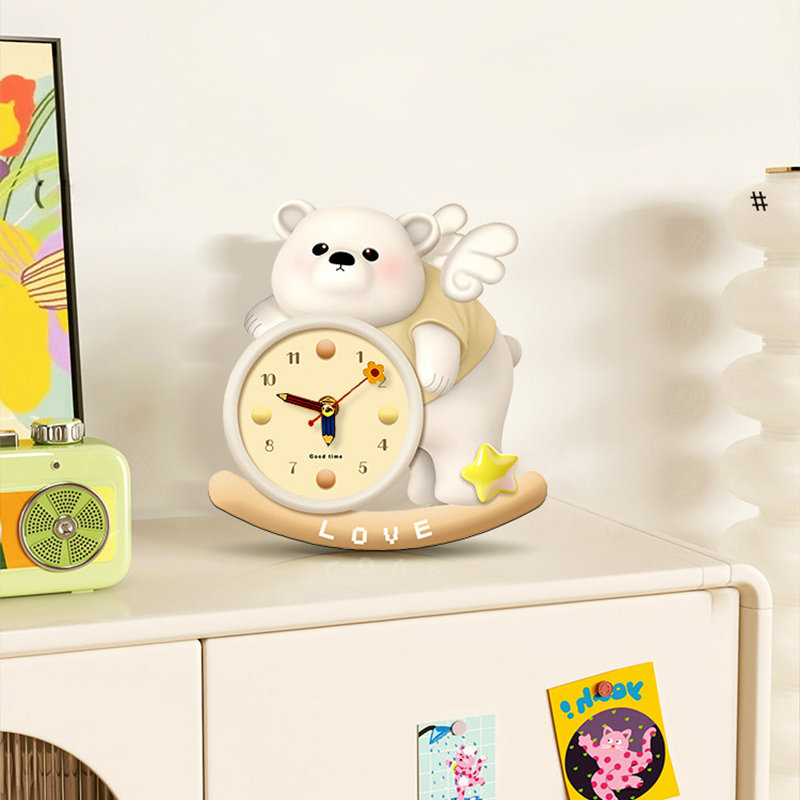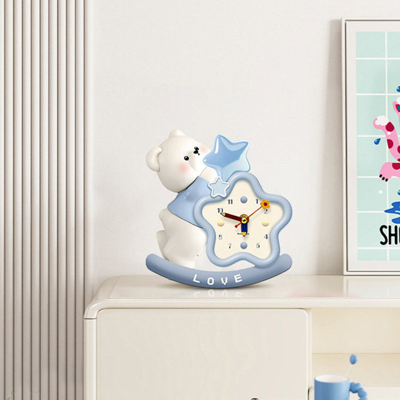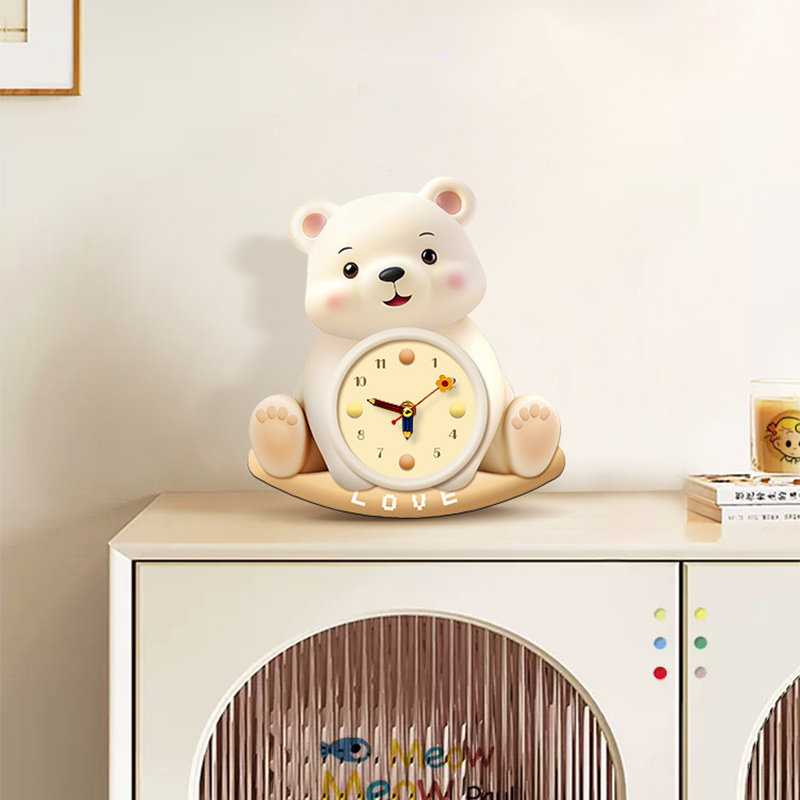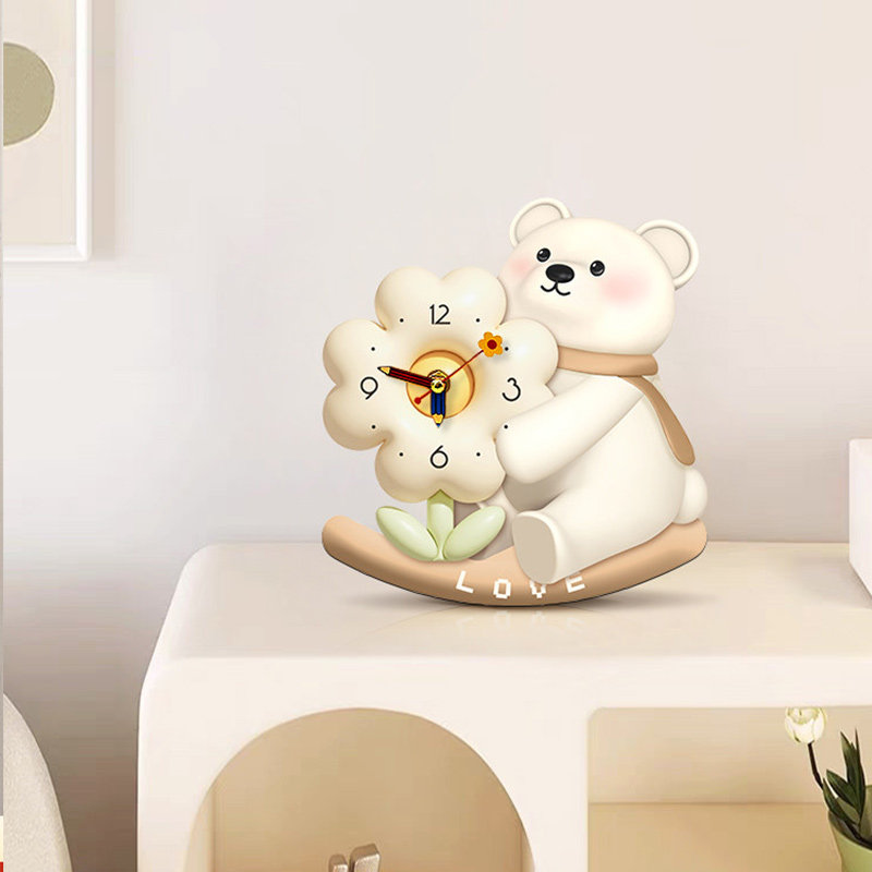 小熊钟表摆台画摇摆新款创意钟表摆件玄关柜斗柜桌面摆放式装饰画