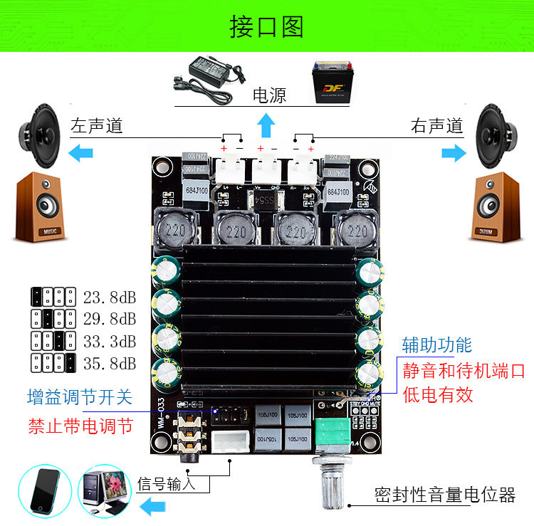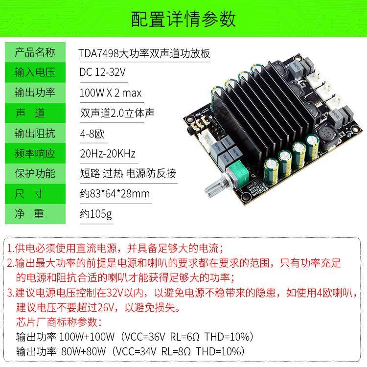 发烧级TDA7498大功率HIFI家用汽车音响游戏机数字音频功放板100W