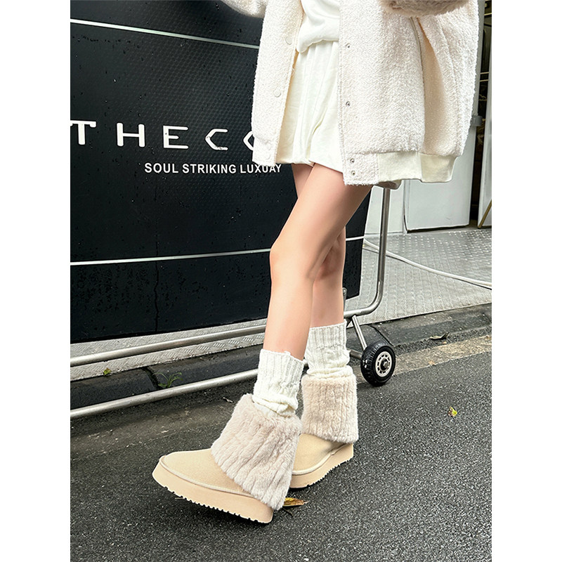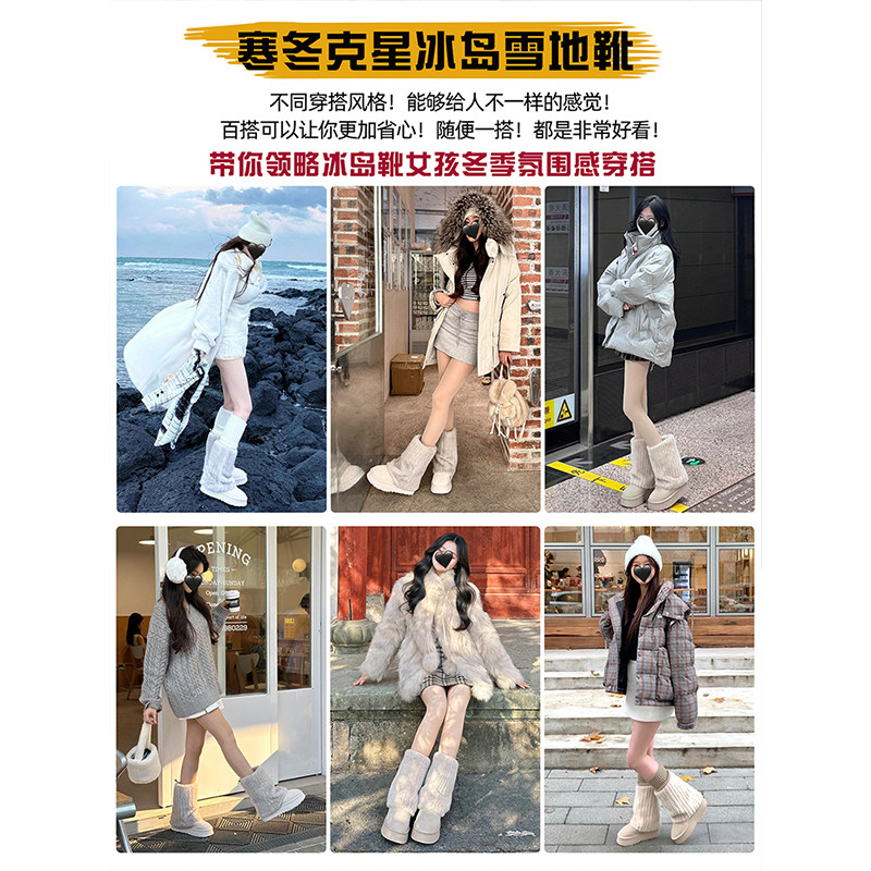 ~冰岛雪地靴女秋冬新款厚底中筒毛毛靴加绒棉鞋白色防水毛绒平底