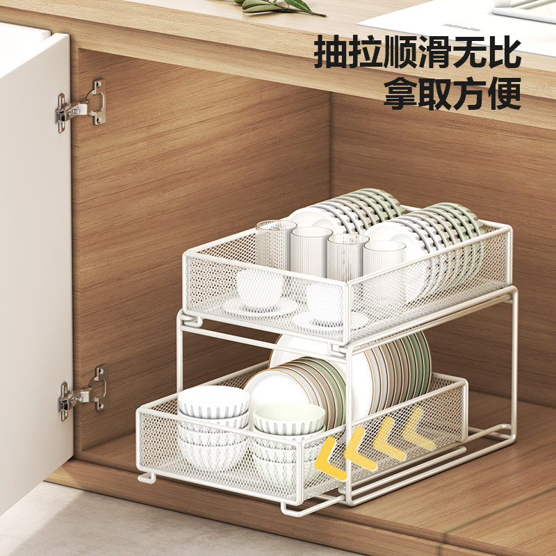 厨房抽拉式置物架橱柜内分层架下水槽柜各种神器大全双层收纳拉篮