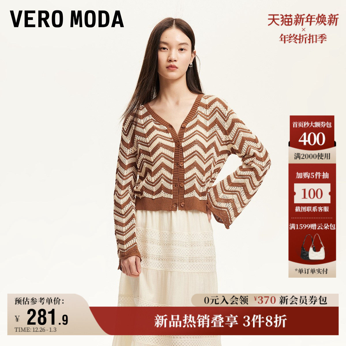 Vero Moda奥莱针织开衫女2025秋季新款镂空V领短款上衣甜美时尚