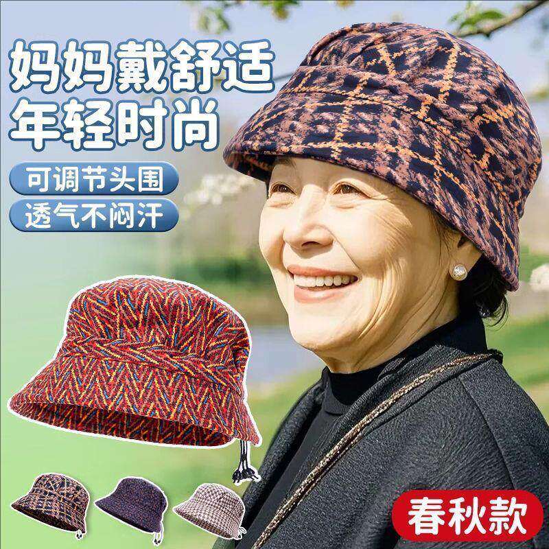春秋帽子时尚新款薄款渔夫帽韩版中老年百搭加厚妈妈女士休闲盆帽