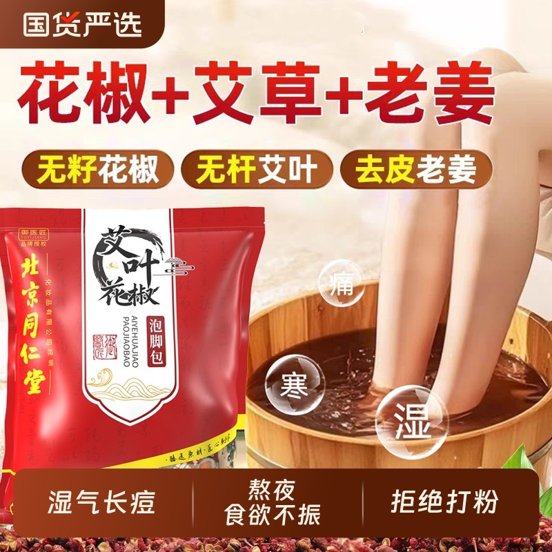 北京同仁堂草本生姜花椒艾草泡脚药包祛湿助眠足浴中药包老姜艾叶