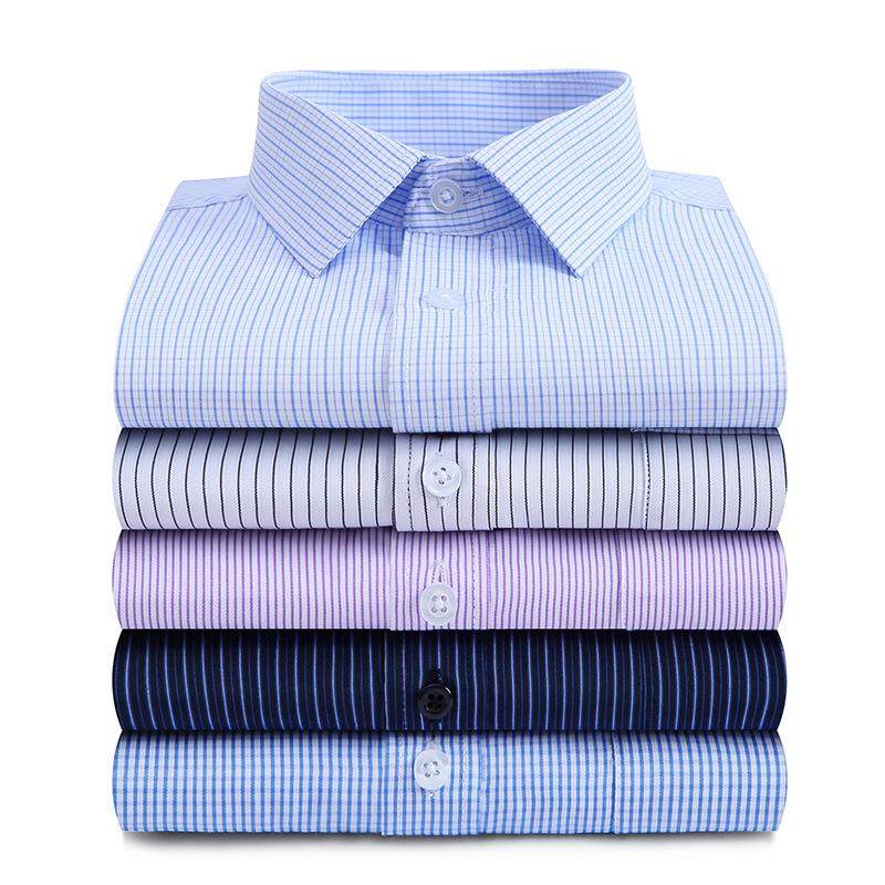2025春秋男衬衫长袖中年商务工装免烫蓝条纹衬衣职业装工作服上衣