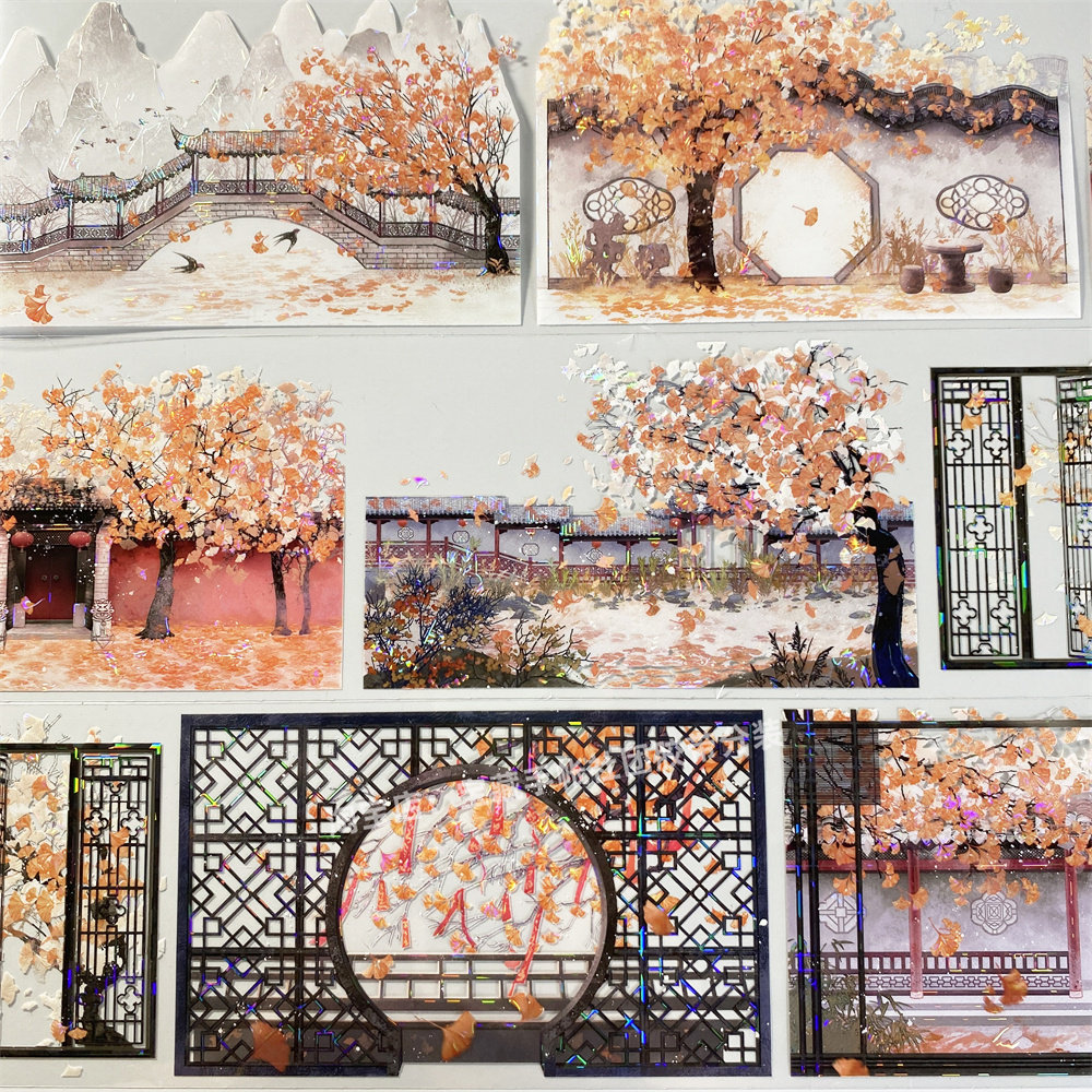 手帐分装胶带a230秋光叠扇李富贵屏风墙古风PET素材账手机壳贴纸