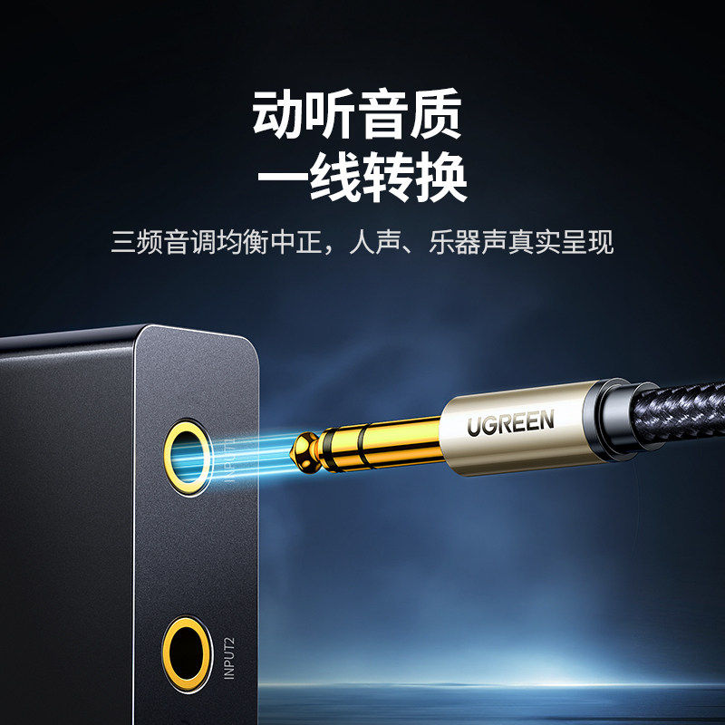 绿联3.5转6.5音频线连接手机电脑音响电吉他电子钢琴6.35mm转接头
