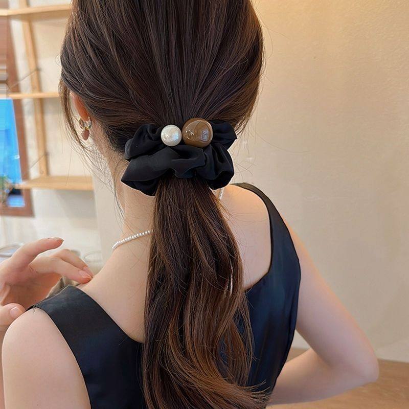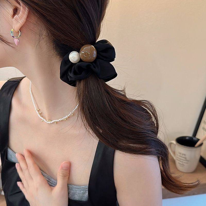 大肠发圈头绳韩系缎面高级感珍珠2025新款扎头发低马尾丸子头皮筋