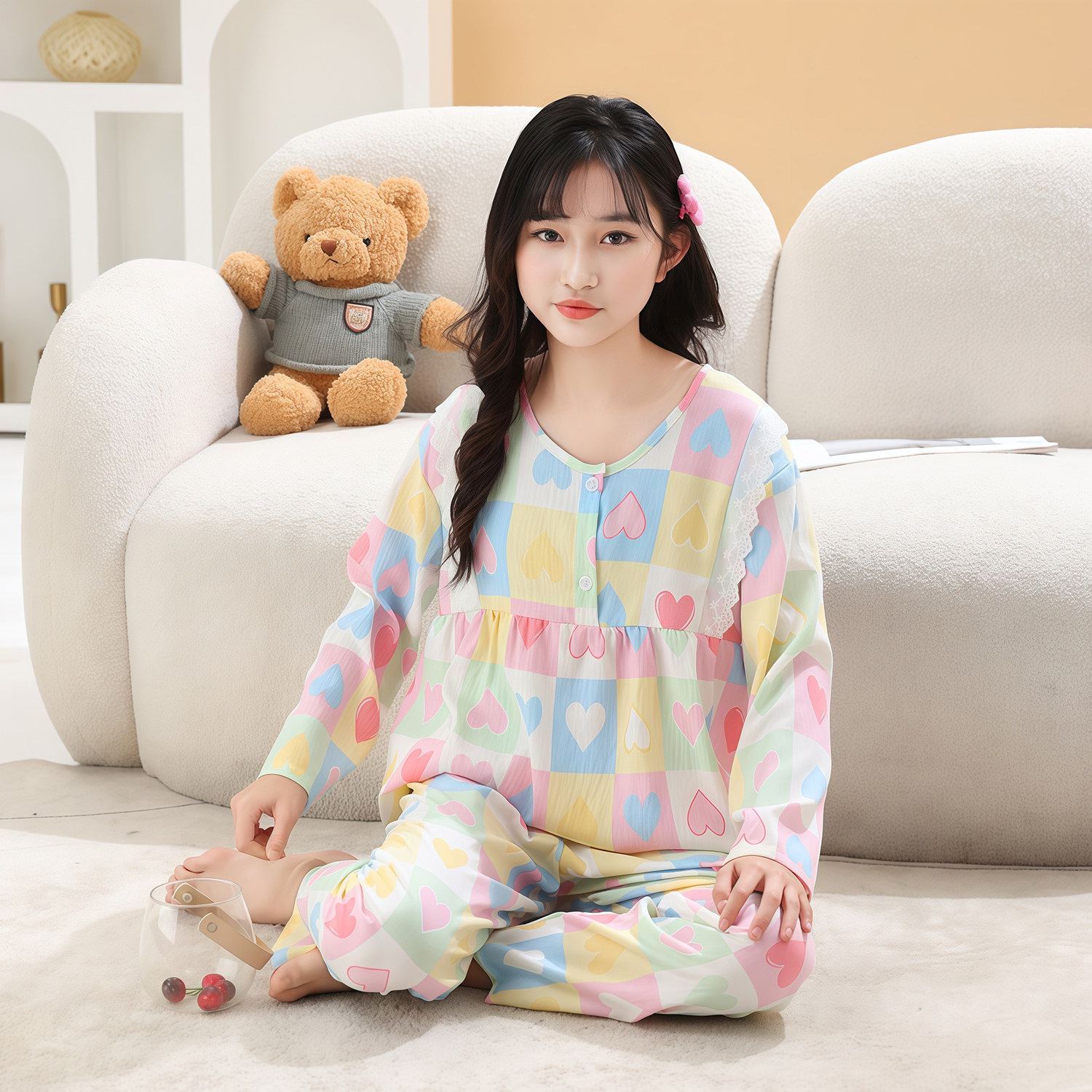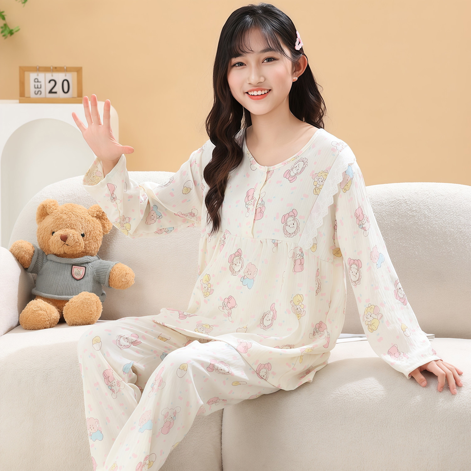 公主风女童睡衣长袖春夏季甜美淑女可爱云朵棉休闲家居服亲子套装