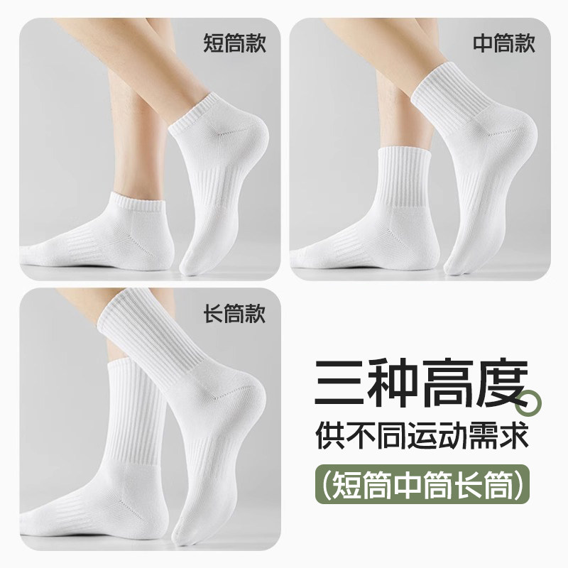 白色袜子男款中筒袜春秋季运动防臭吸汗保暖长袜夏季男士耐磨短袜