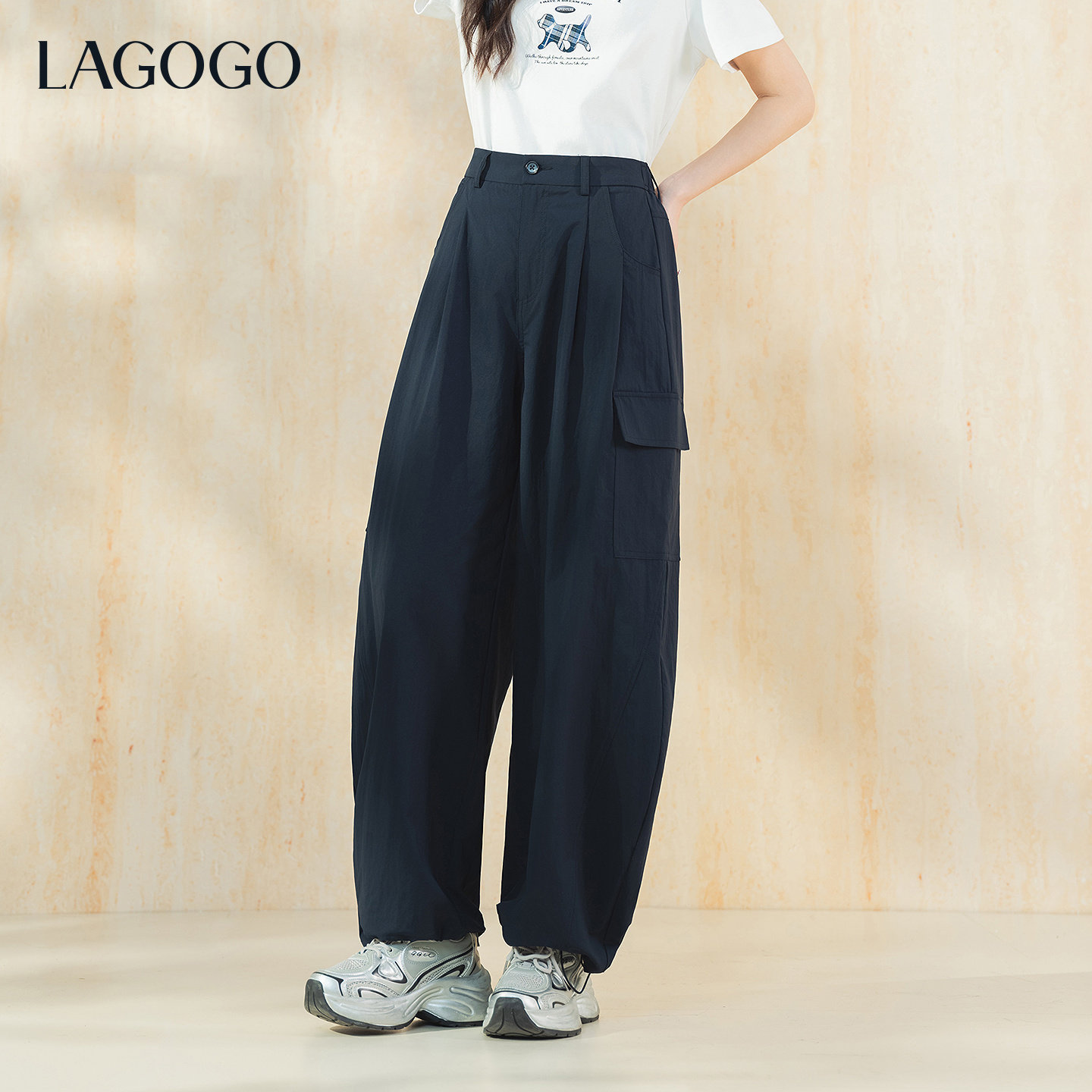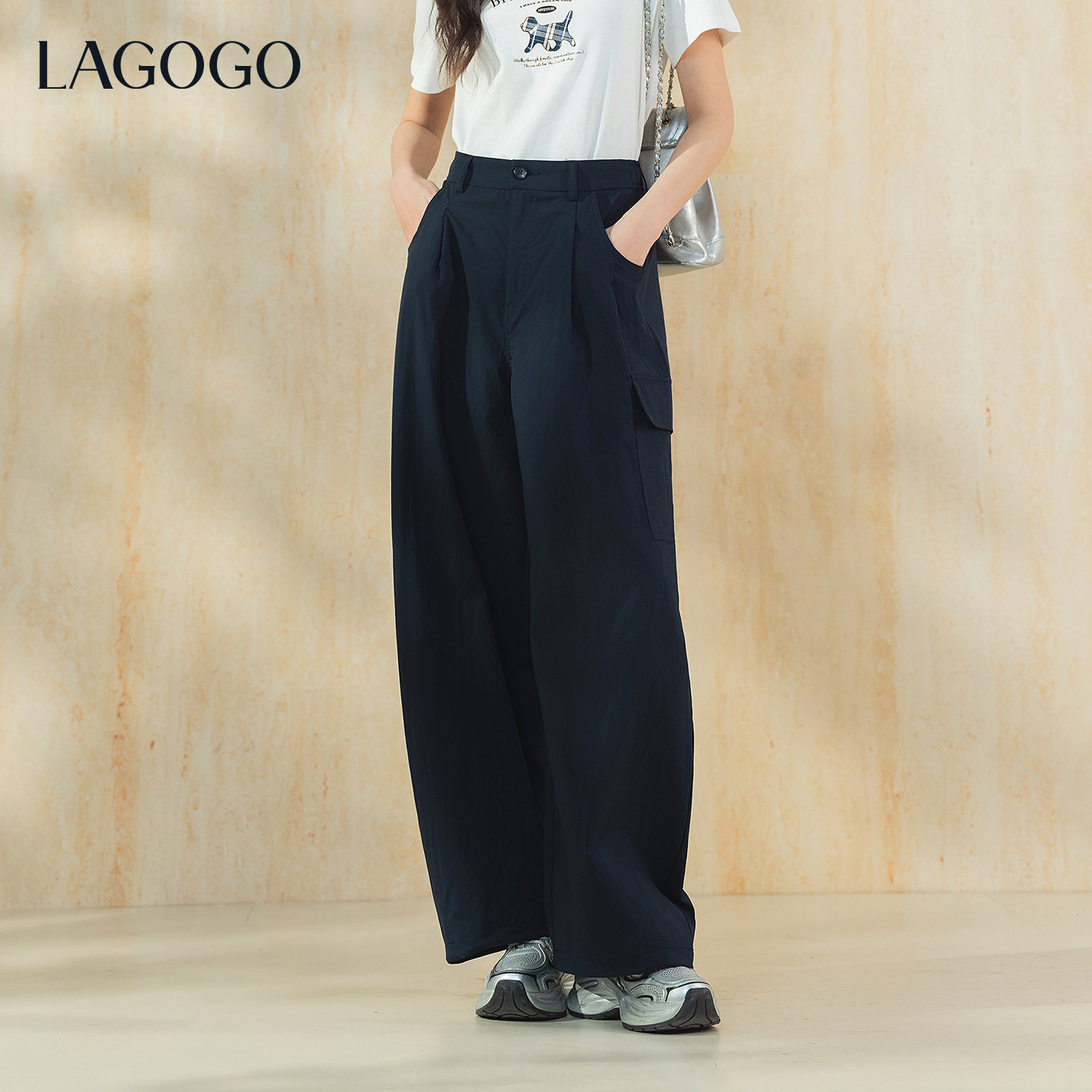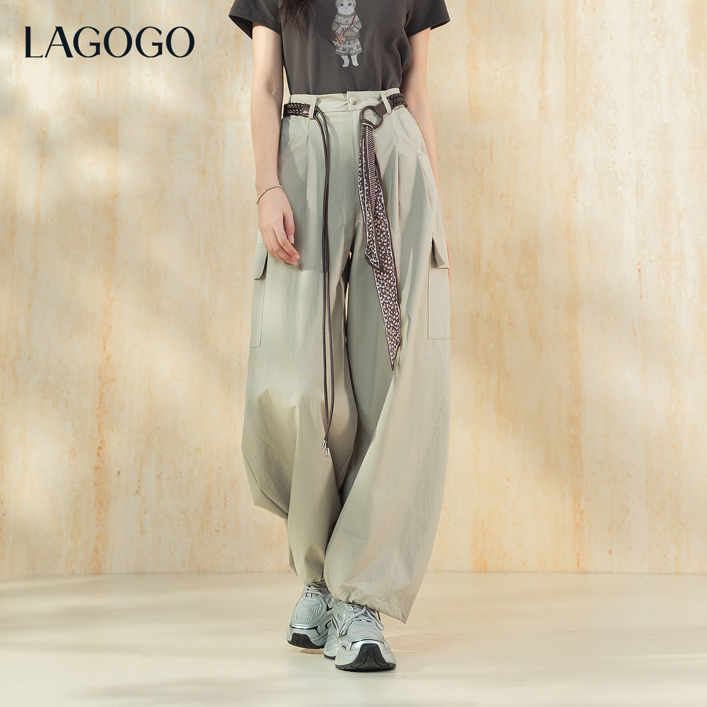 LAGOGO宽松工装休闲裤女拉谷谷2026年春新款复古显瘦阔腿弯刀裤