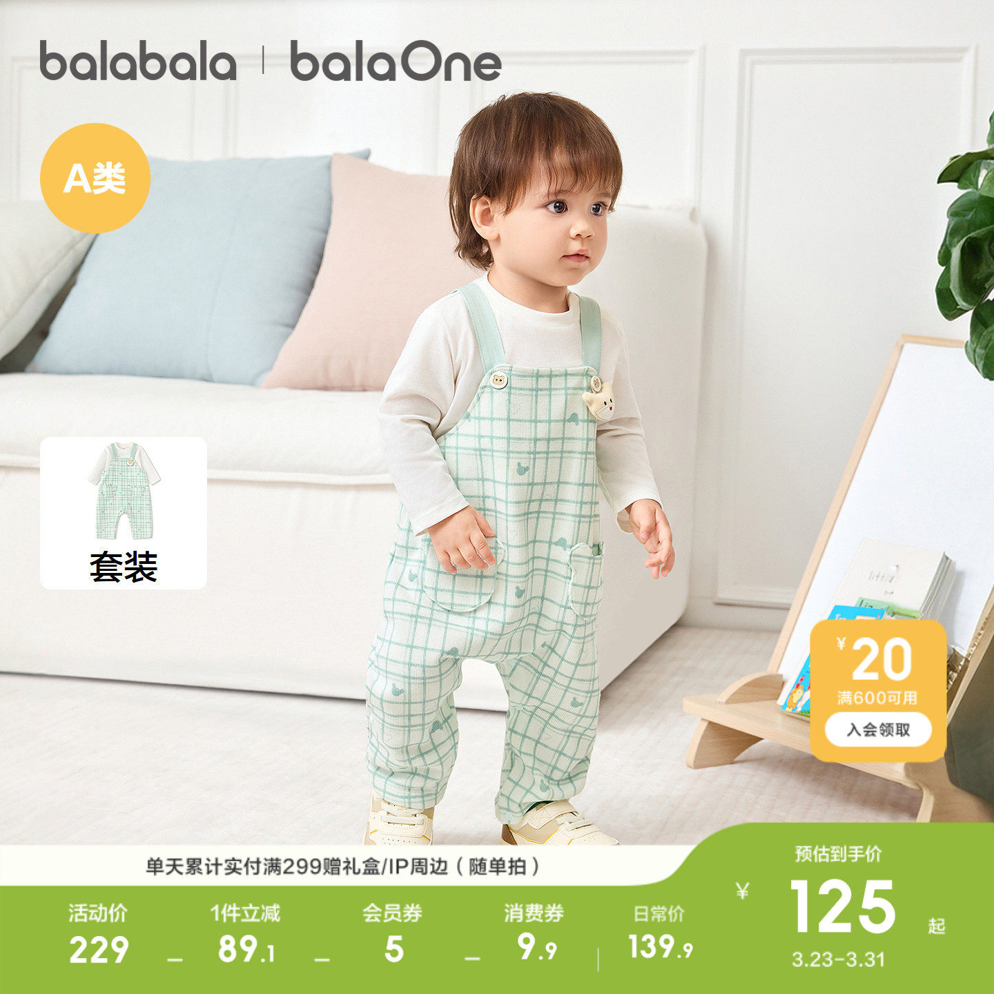 【balaOne】巴拉巴拉童装宝宝套装2026新款春装背带裤两件套时尚