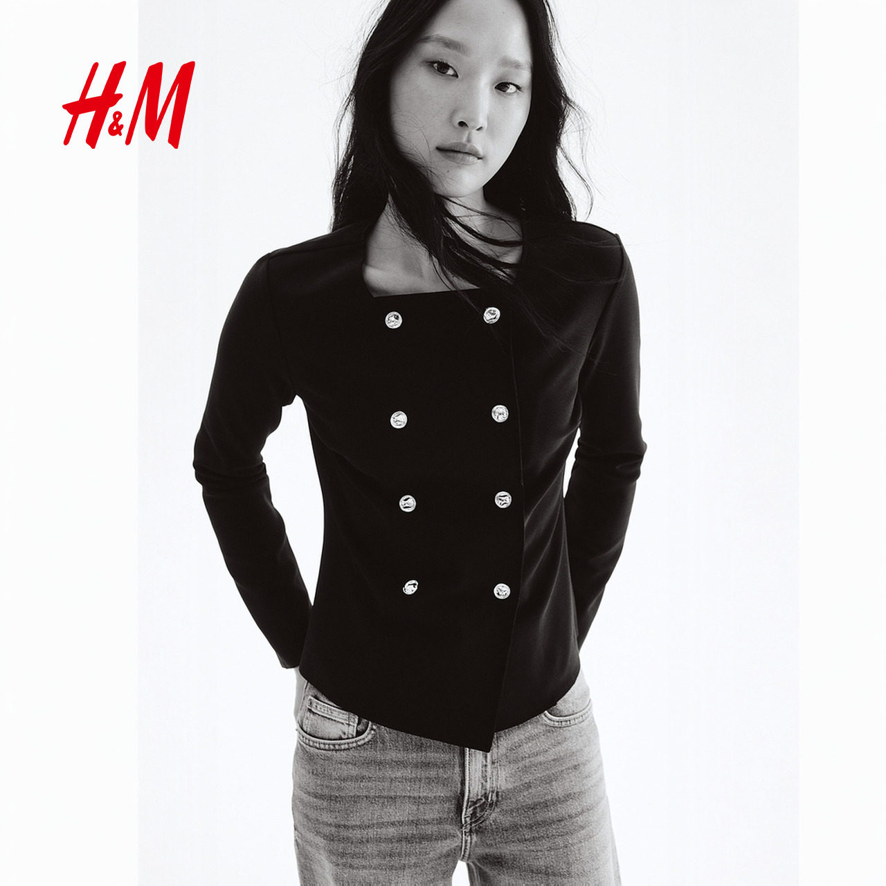 HM女士针织衫春季双排扣开衫1299889