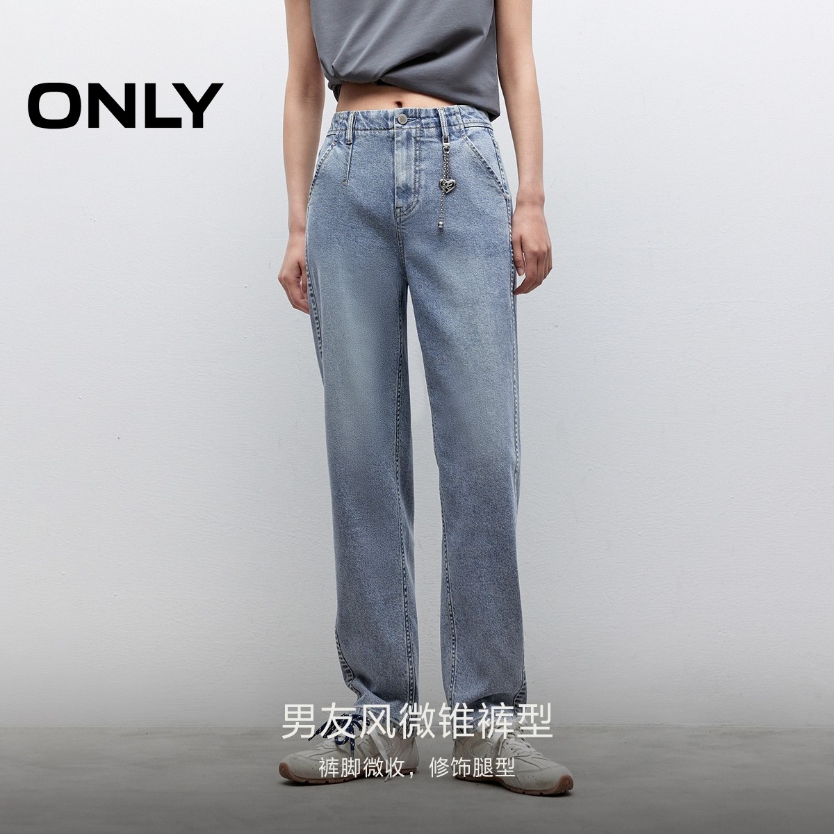 ONLY2025秋季新款小个子友好链条装饰高腰九分锥形裤牛仔裤女