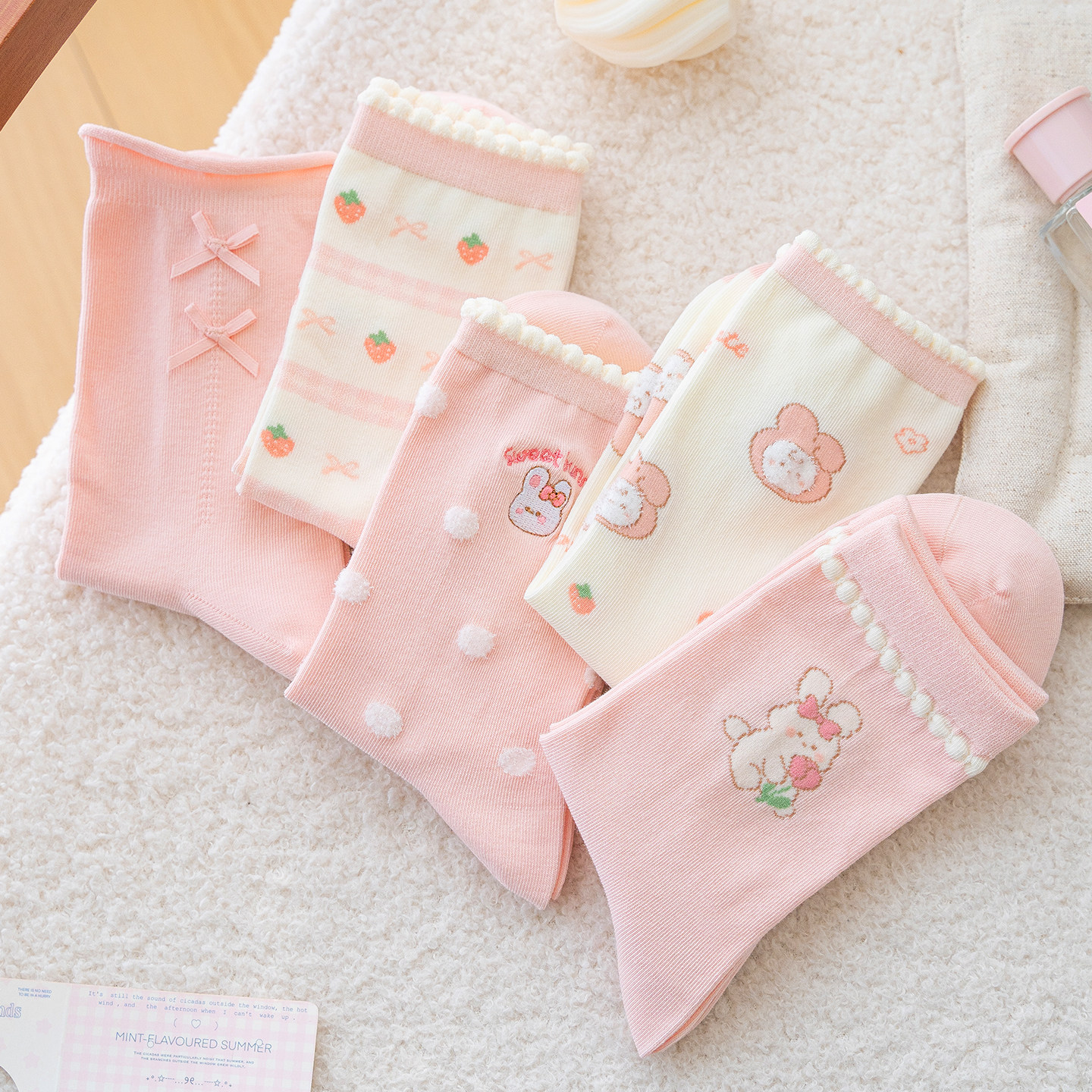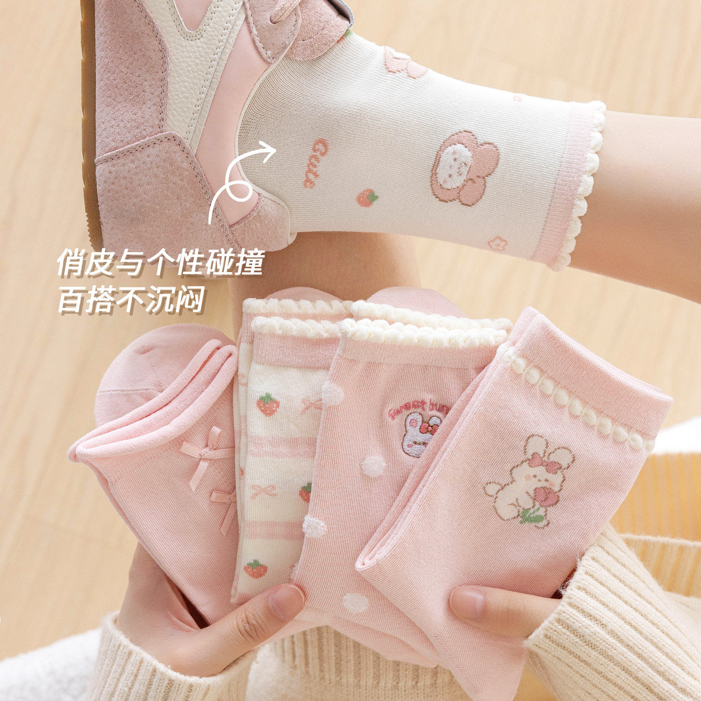 卡拉美拉2025新款袜子秋冬女士中筒袜棉袜可爱卡通女袜舒适潮流