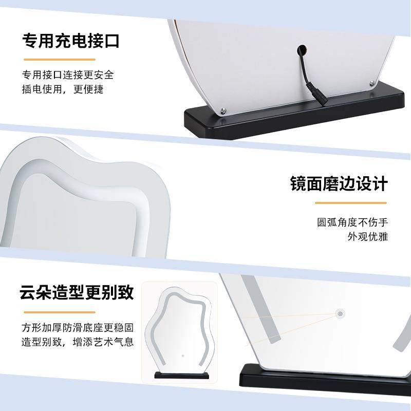 智能轻奢高级法式镜子卧室台式梳妆镜桌面网红云朵带灯led化妆镜