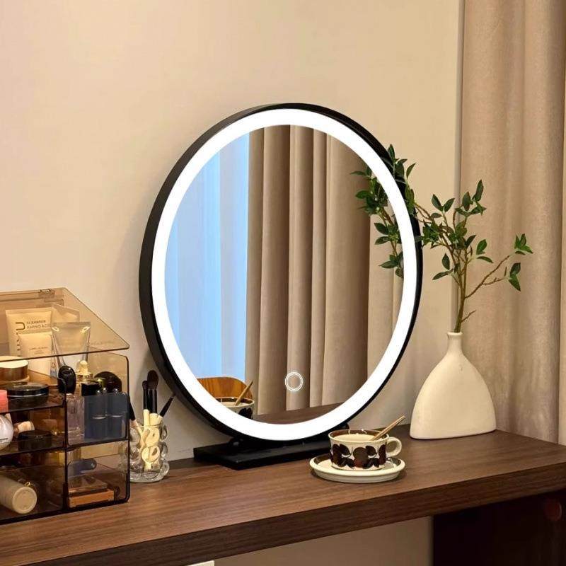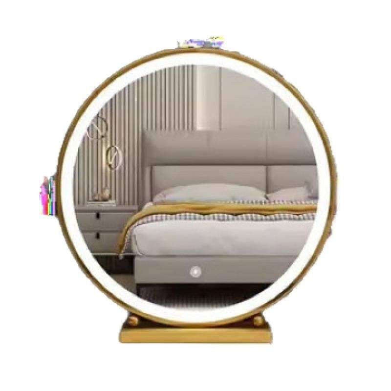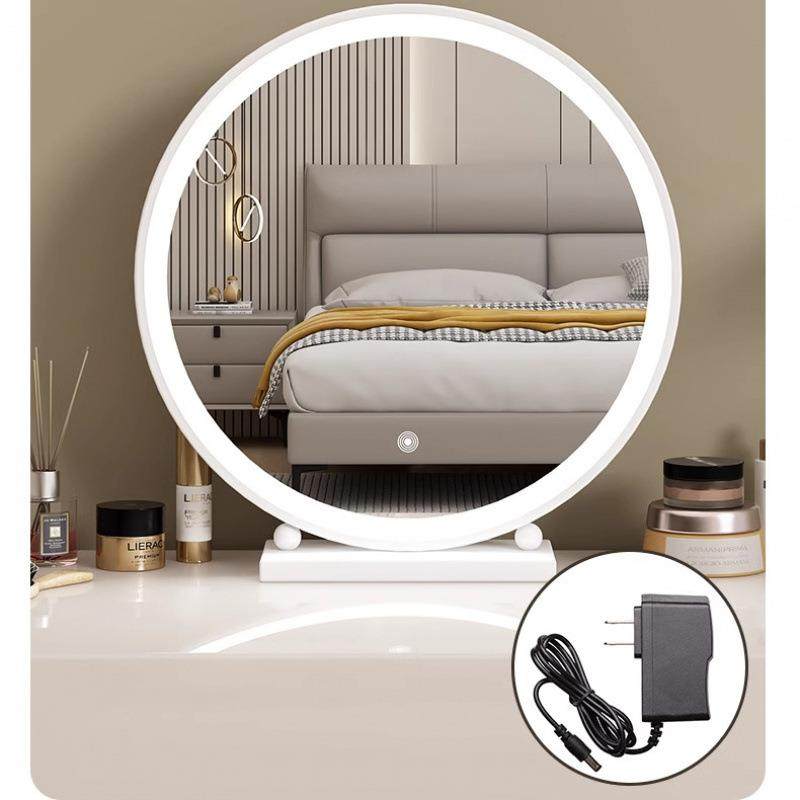 新款梳妆台镜子带灯女生房间桌面卧室轻奢复古台式化妆镜