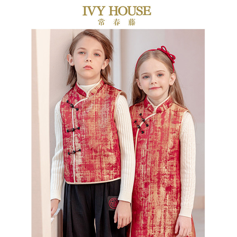IVY HOUSE常春藤儿童装男女童春季款 国风绗棉马甲旗袍连衣裙新年