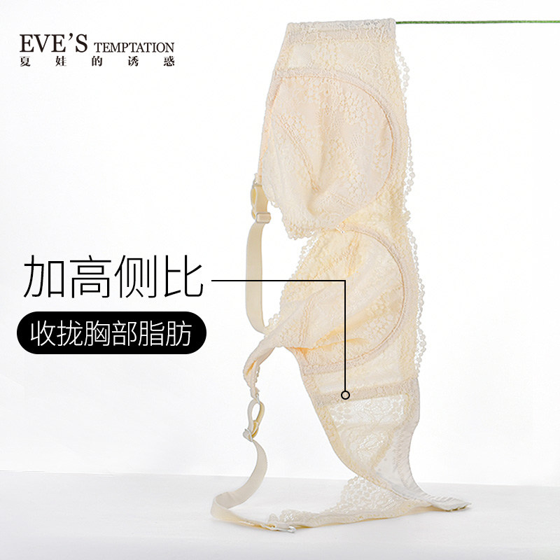 夏娃的诱惑铃兰蕾丝美背上托大码内衣大胸显小文胸薄款mm大码胸罩