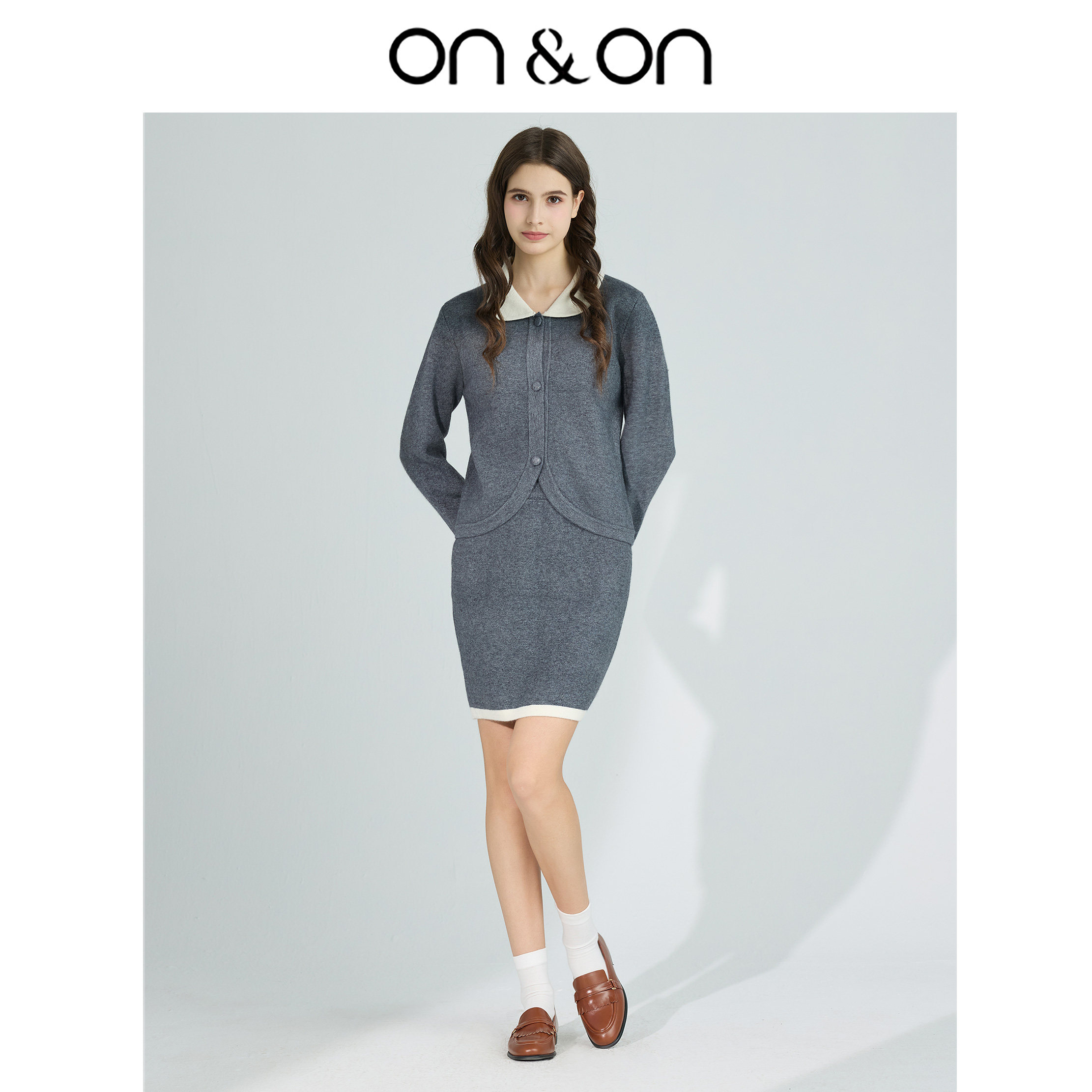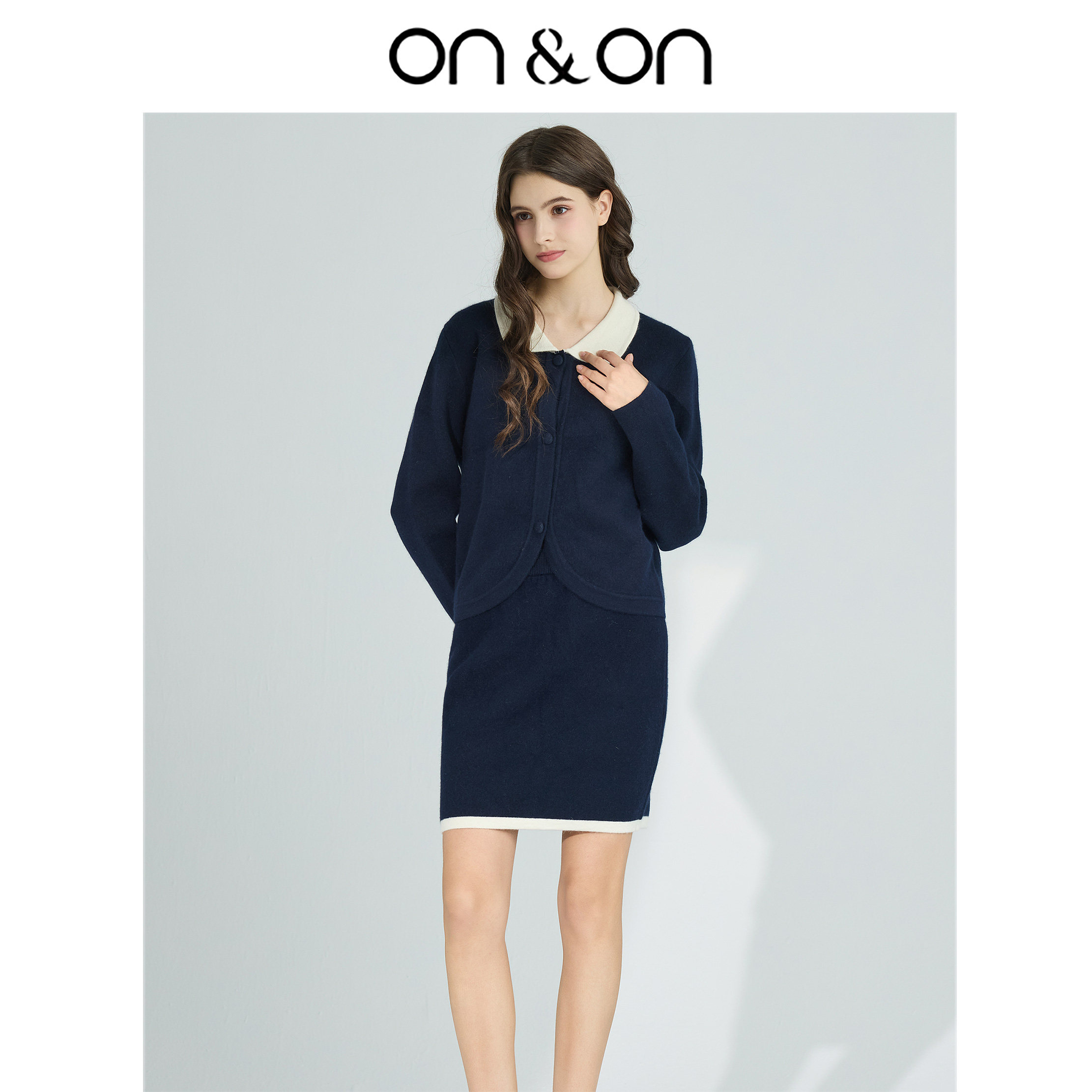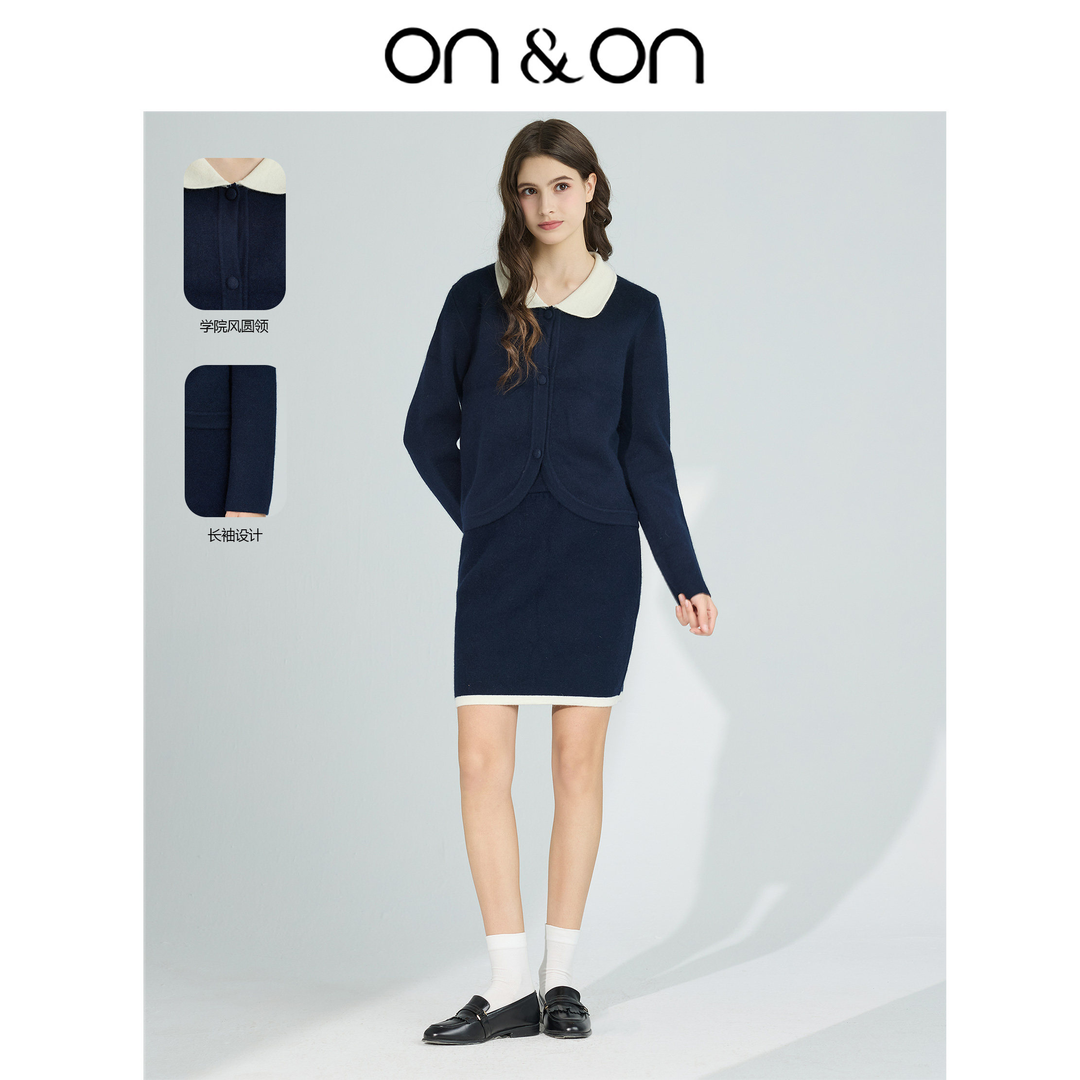 ON&ON/安乃安韩系气质套装撞色翻领针织休闲翻领长袖+针织半裙女