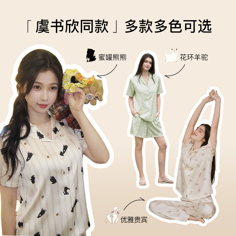 赵露思同款蕉内丝丝515Home家居服冰丝女款胸垫冬季长袖天丝睡衣