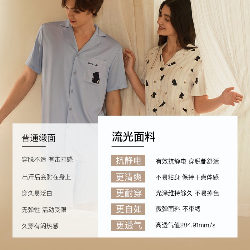 ubras流光家居服情侣男女士睡衣带杯缎面7A抗菌2025年新款秋冬季