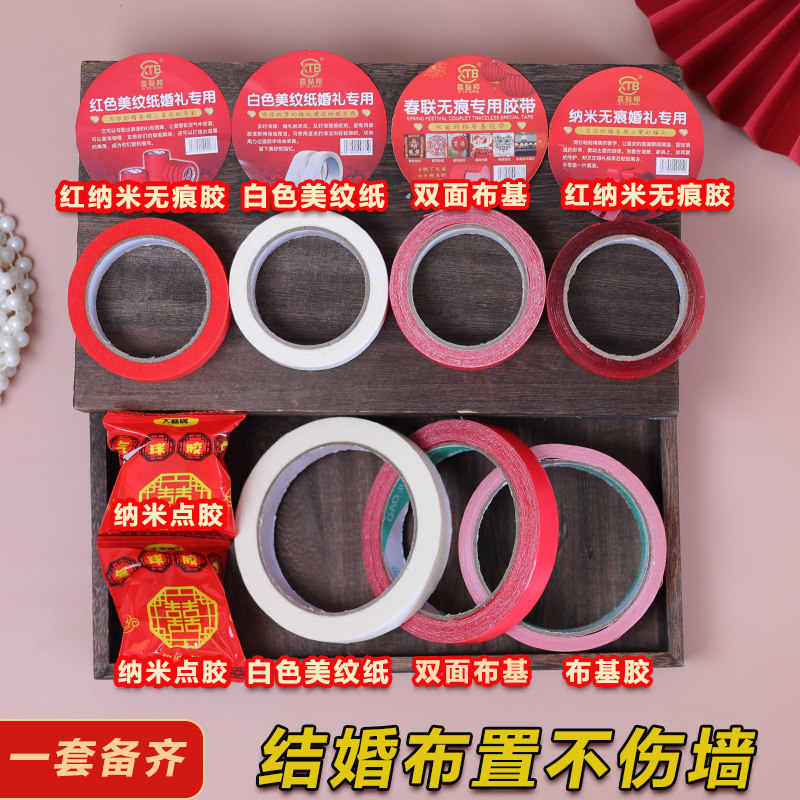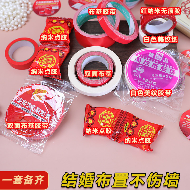 美纹纸婚房布置专用胶美纹纸胶带墙面无痕不伤墙结婚贴婚庆专用胶带气球红色纳米胶带喜字不留胶点点胶装饰胶