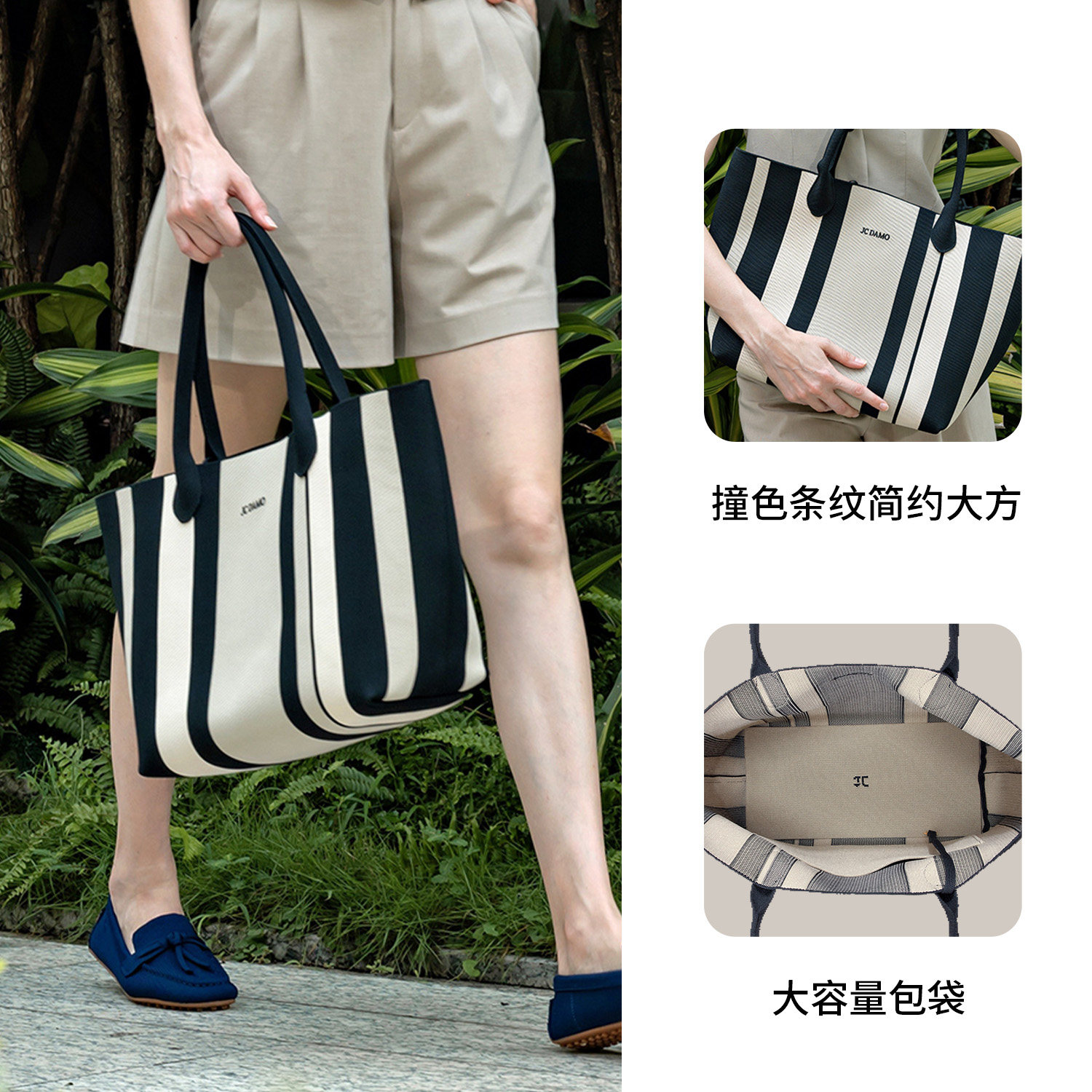JC DAMO飞织条纹托特包新款大容量通勤包单肩手提包设计感电脑包