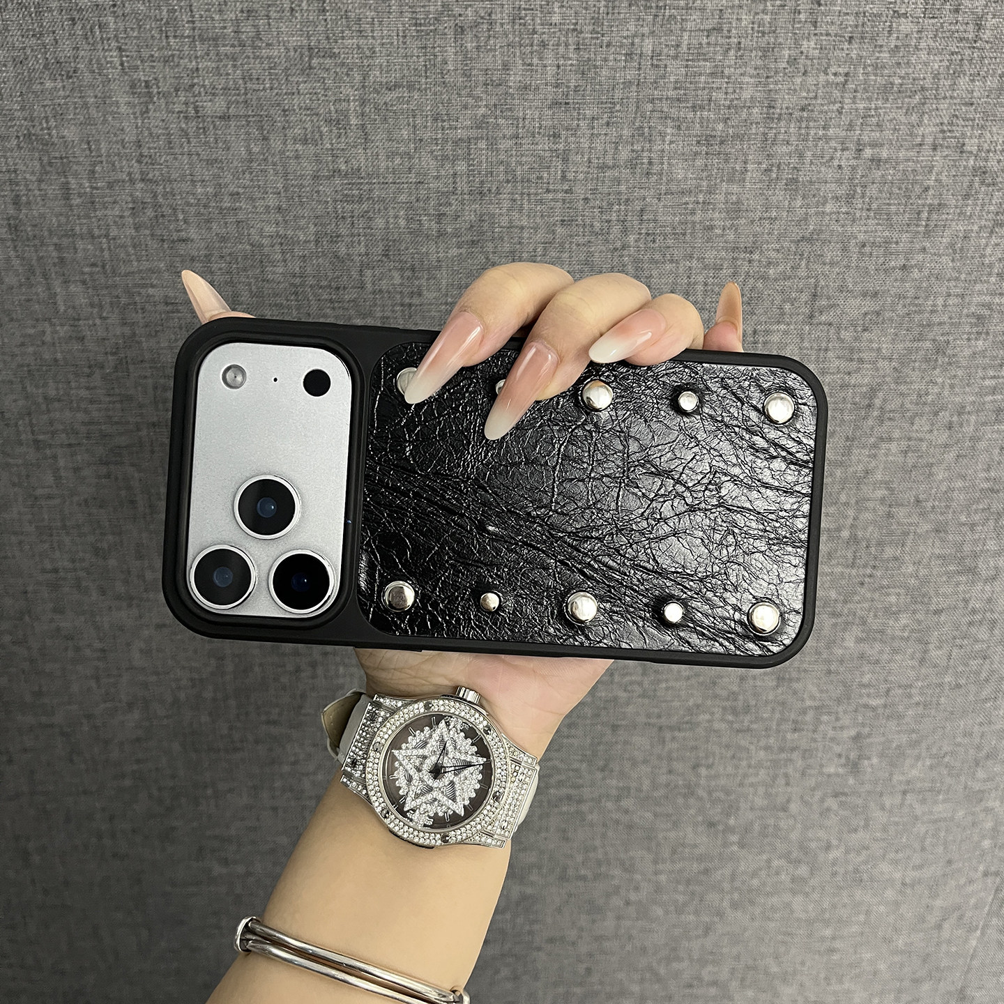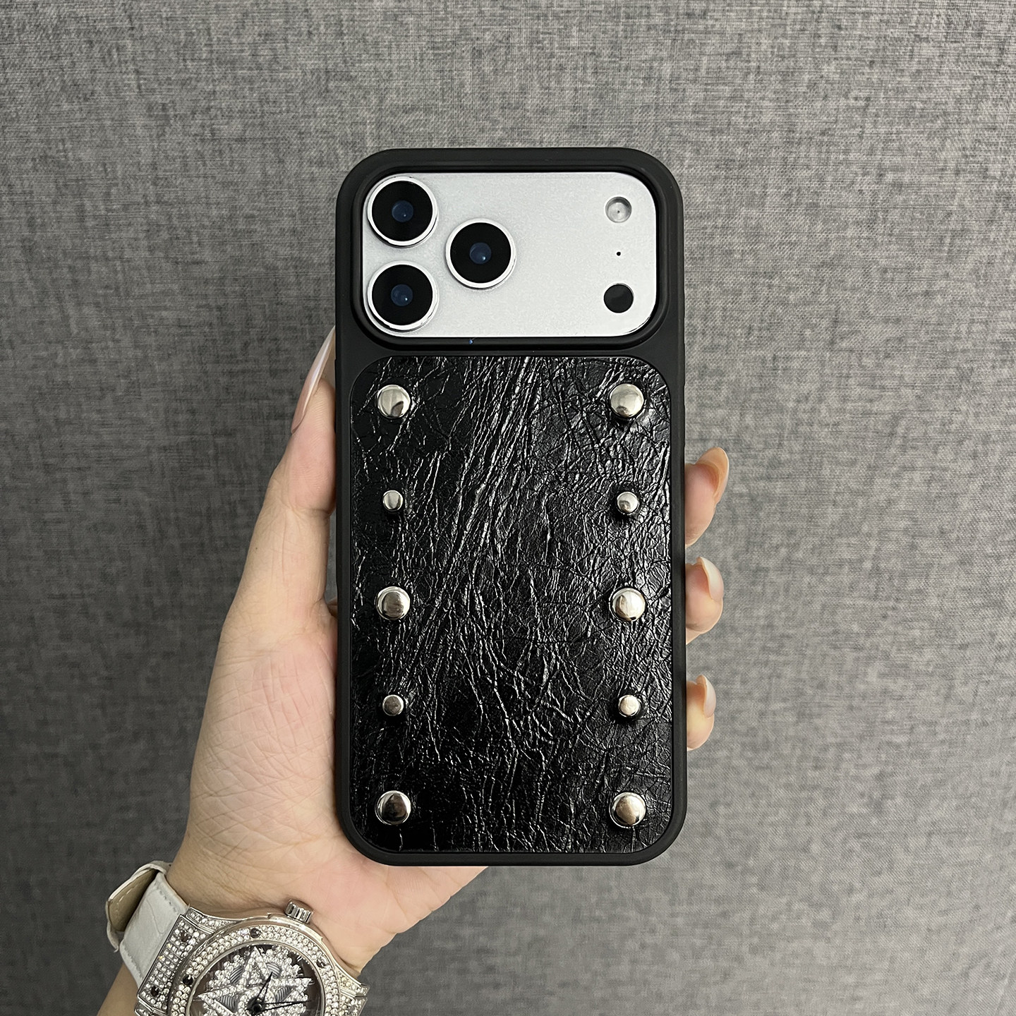 三只鱼【网红黑色褶皱纹铆钉】适用苹果17/16/15promax手机壳新款ipone潮牌小众防摔全包保护套男女个性高档