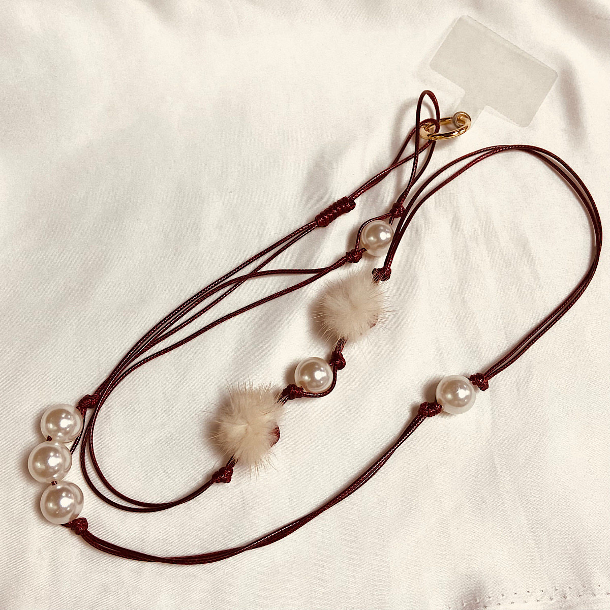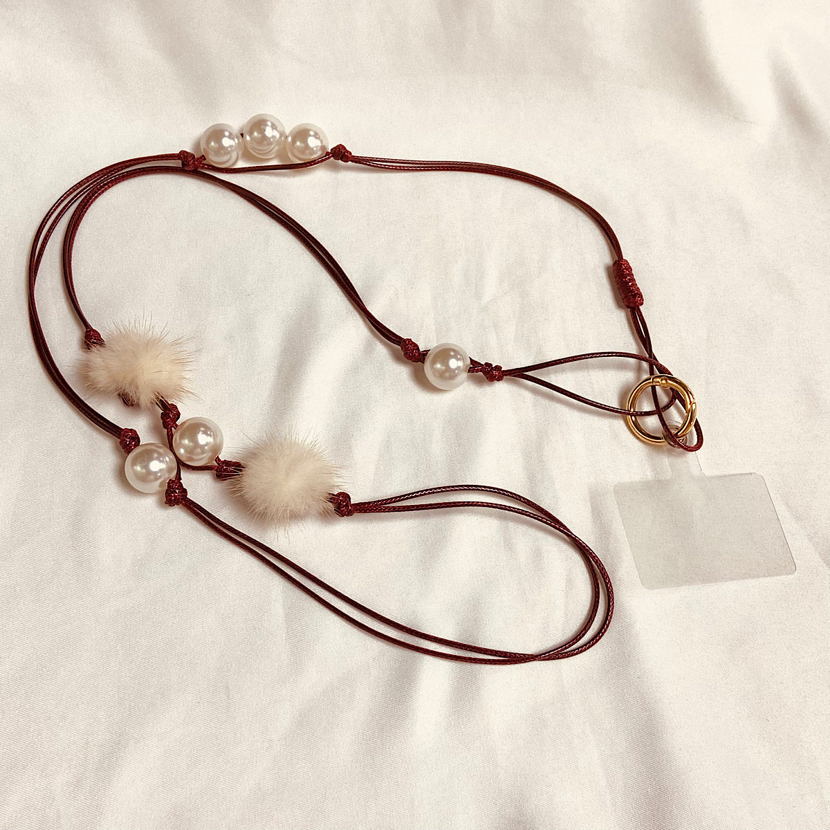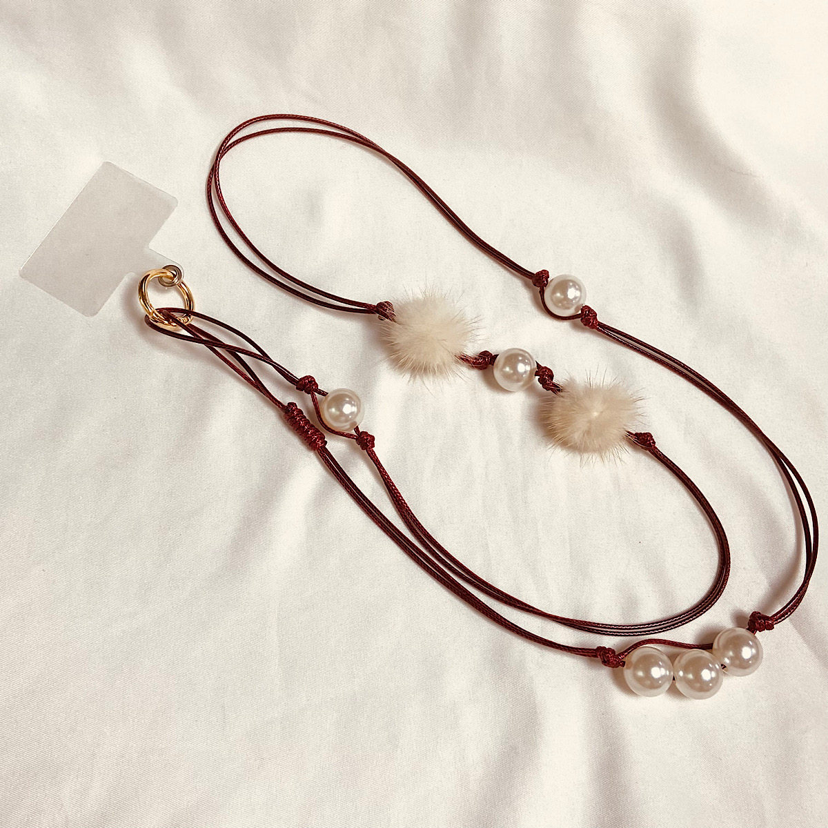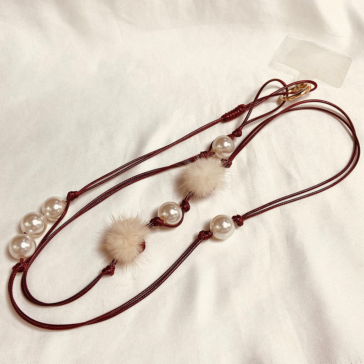时尚高级感毛球珍珠挂绳斜挎可背垫片肩带斜背链长