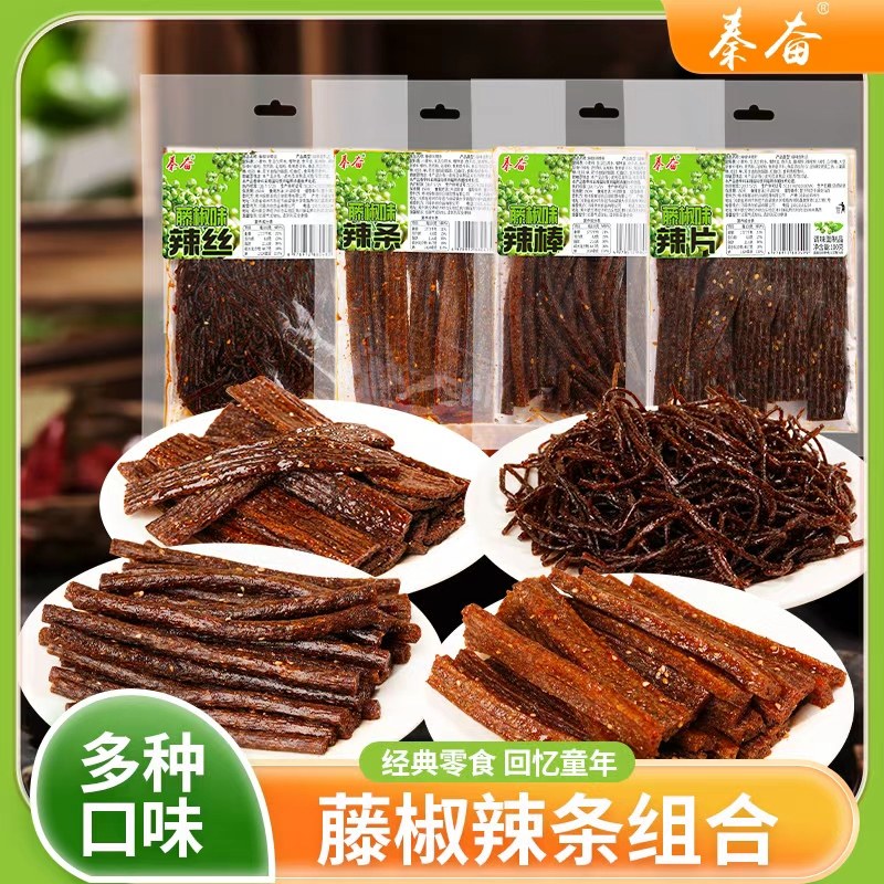 藤椒辣条组合正品秦奋手工湖南特产麻辣小吃解馋经典童年香辣