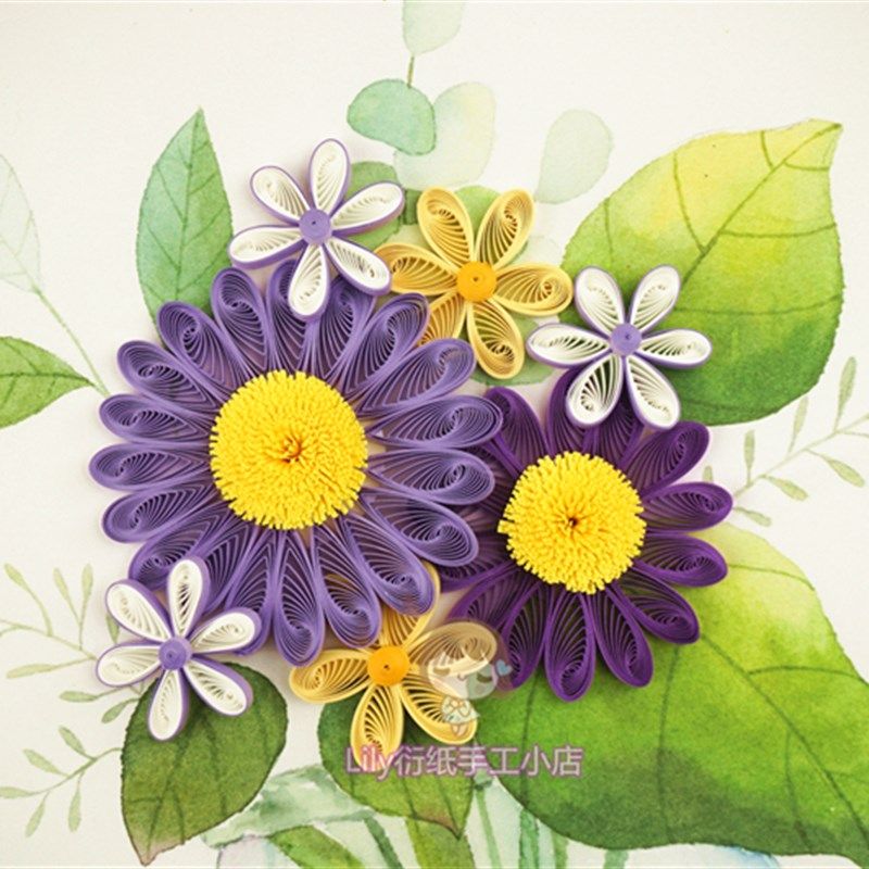 DIY手工衍纸花卉紫色雏菊底稿材料包基础套装教师节母亲亲子活动