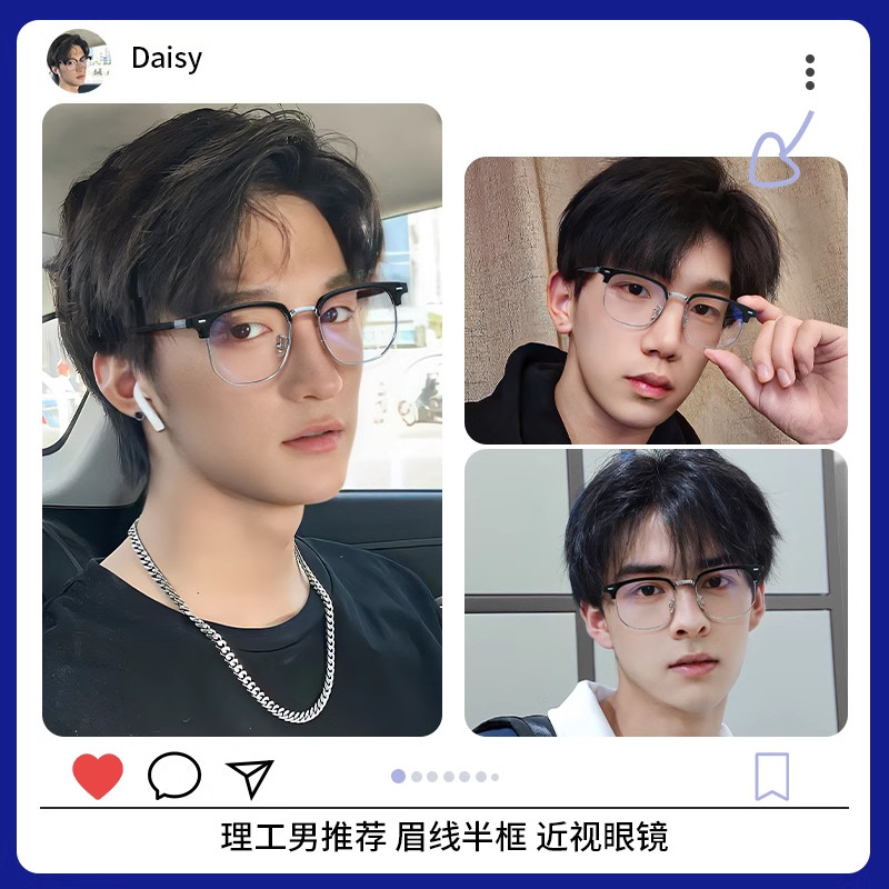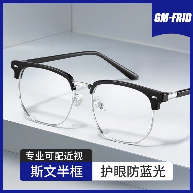 半框眼镜近视男款防蓝光平光可配度数高级感斯文败类痞帅男眼睛架