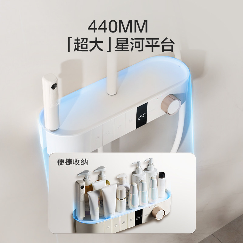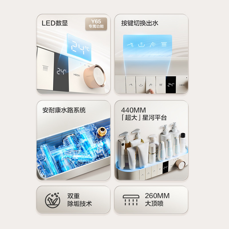 恒洁钢琴按键温度数显大平台淋浴花洒套装卫生间浴室明装除垢Y65