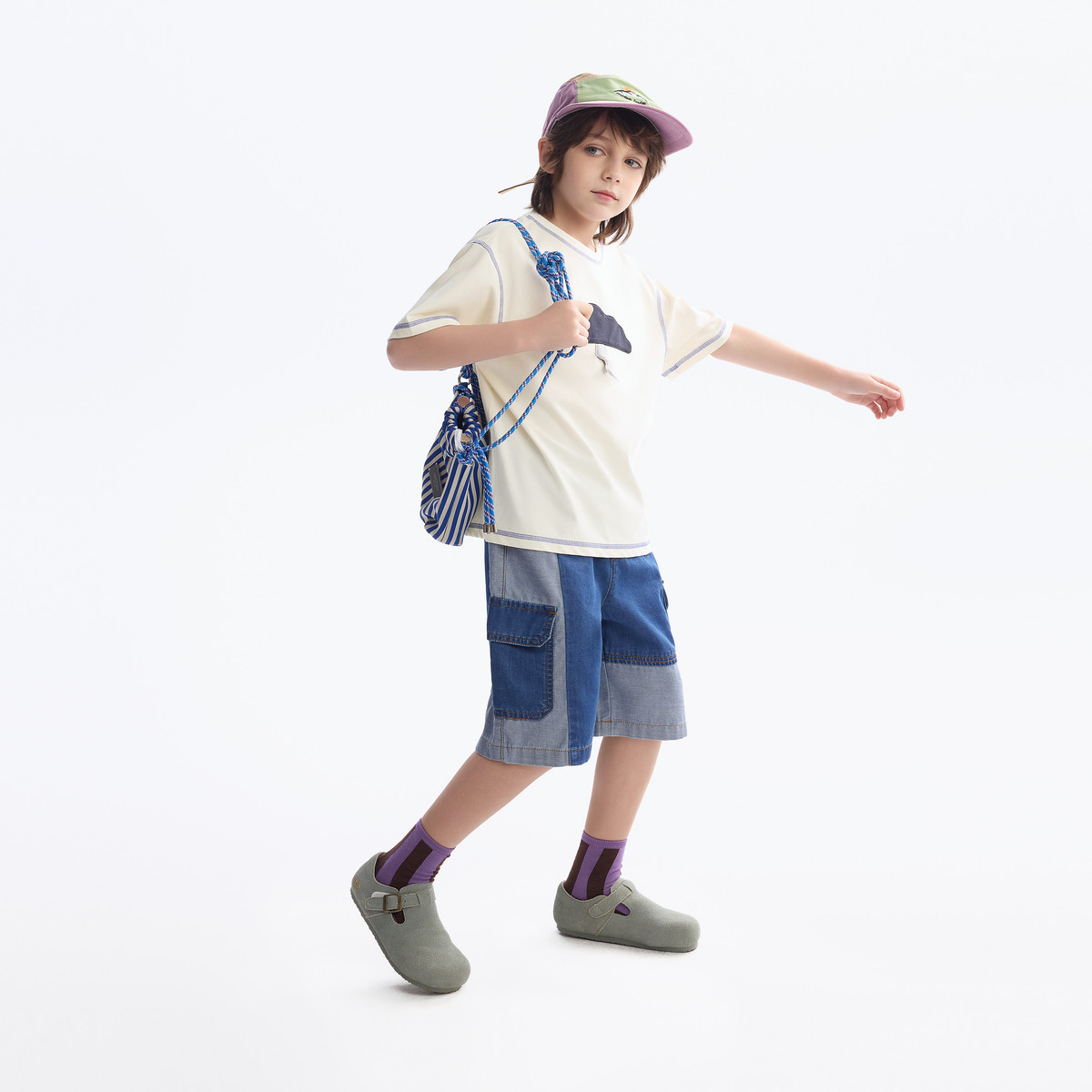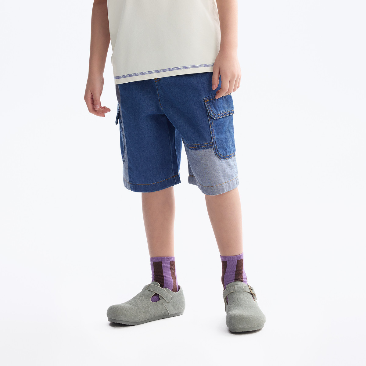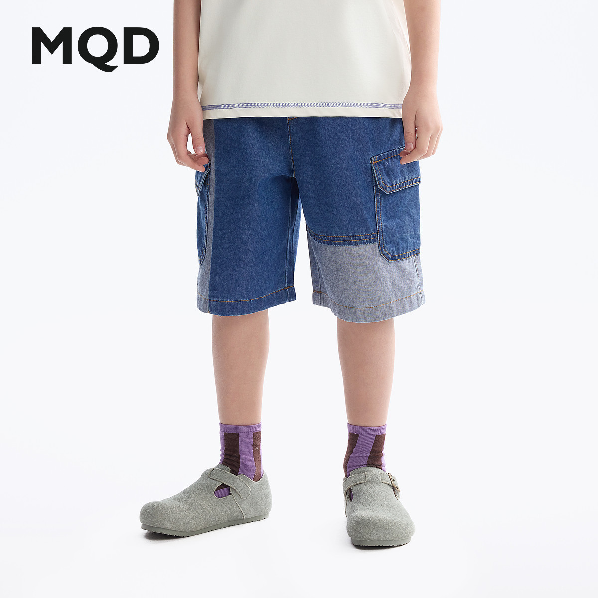 【凉感】MQD童装男童牛仔短裤2025夏装新款儿童拼接牛仔五分短裤