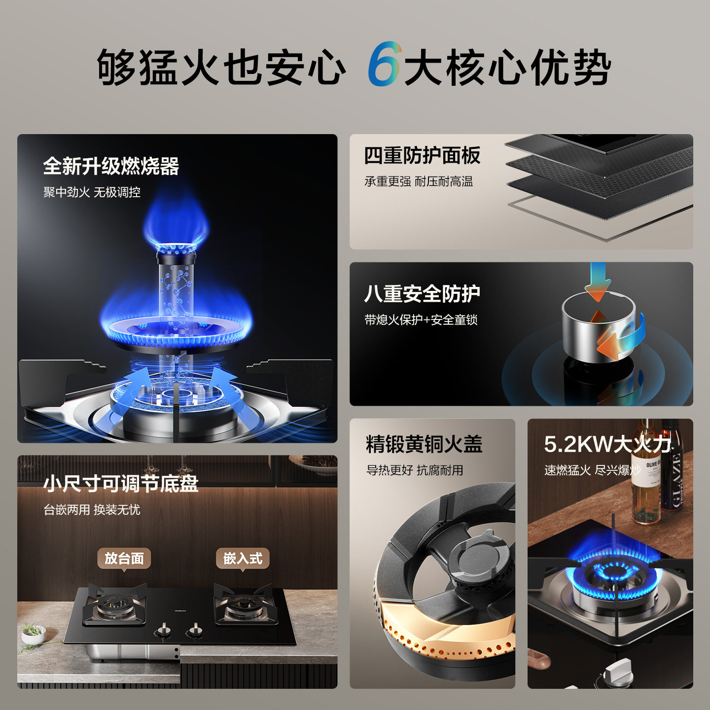 老板30B5X家用猛火燃气灶天然气双灶台嵌入式一级能效官方正品