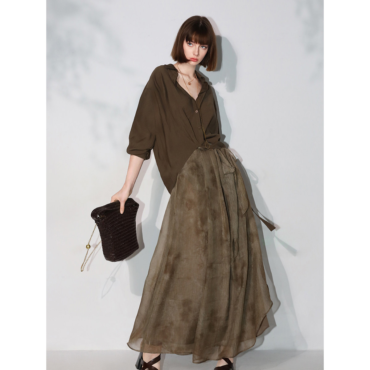 森马长袖衬衫女大翻领雪纺衬衣短背心俏皮可爱春季宽松两件套气质