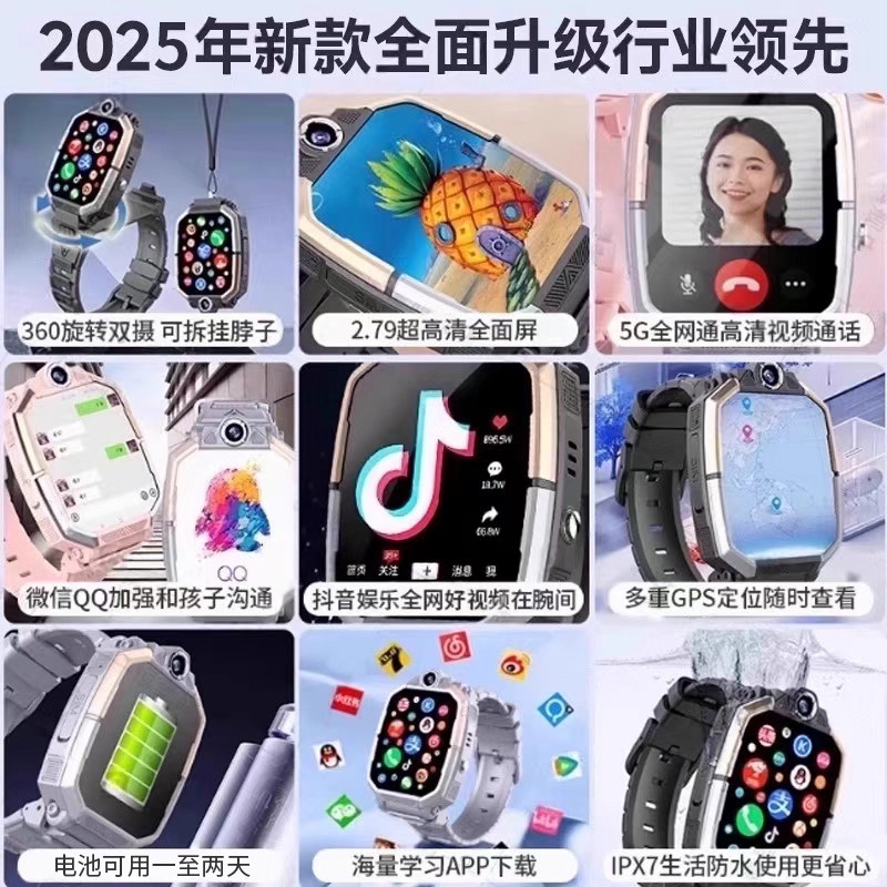 旗舰新款5G全网通儿童电话手表智能可插卡定位防水小学生男女孩初中高中生专用旋转双摄正版微信