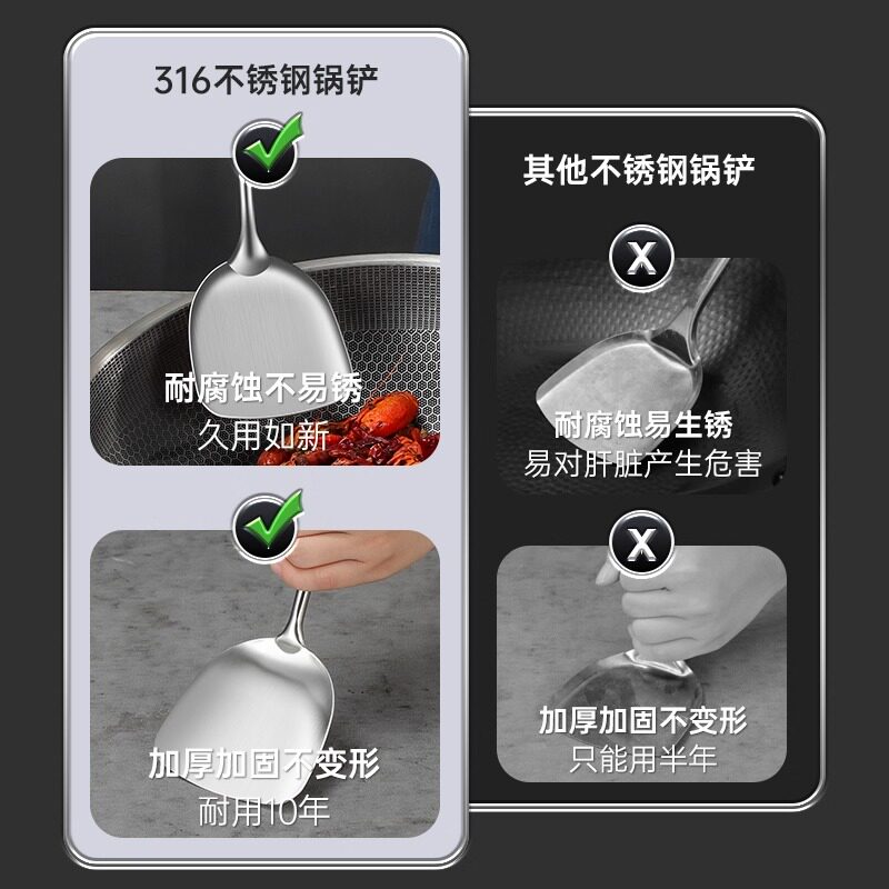316不锈钢炒勺加厚炒菜勺铲子食品级家用厨具木柄锅铲套装铁锅铲