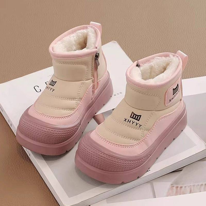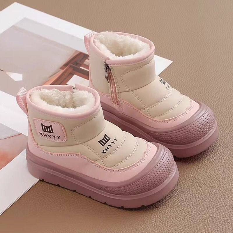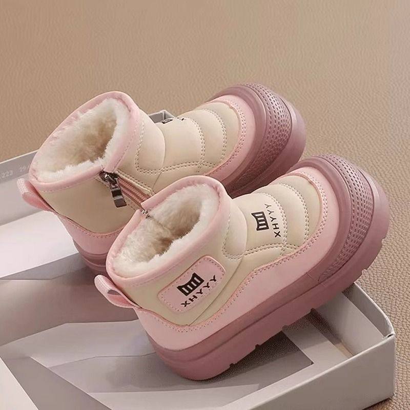 巴布豆女童皮毛一体雪地靴2025新款秋冬季防水加绒女孩防滑抗寒
