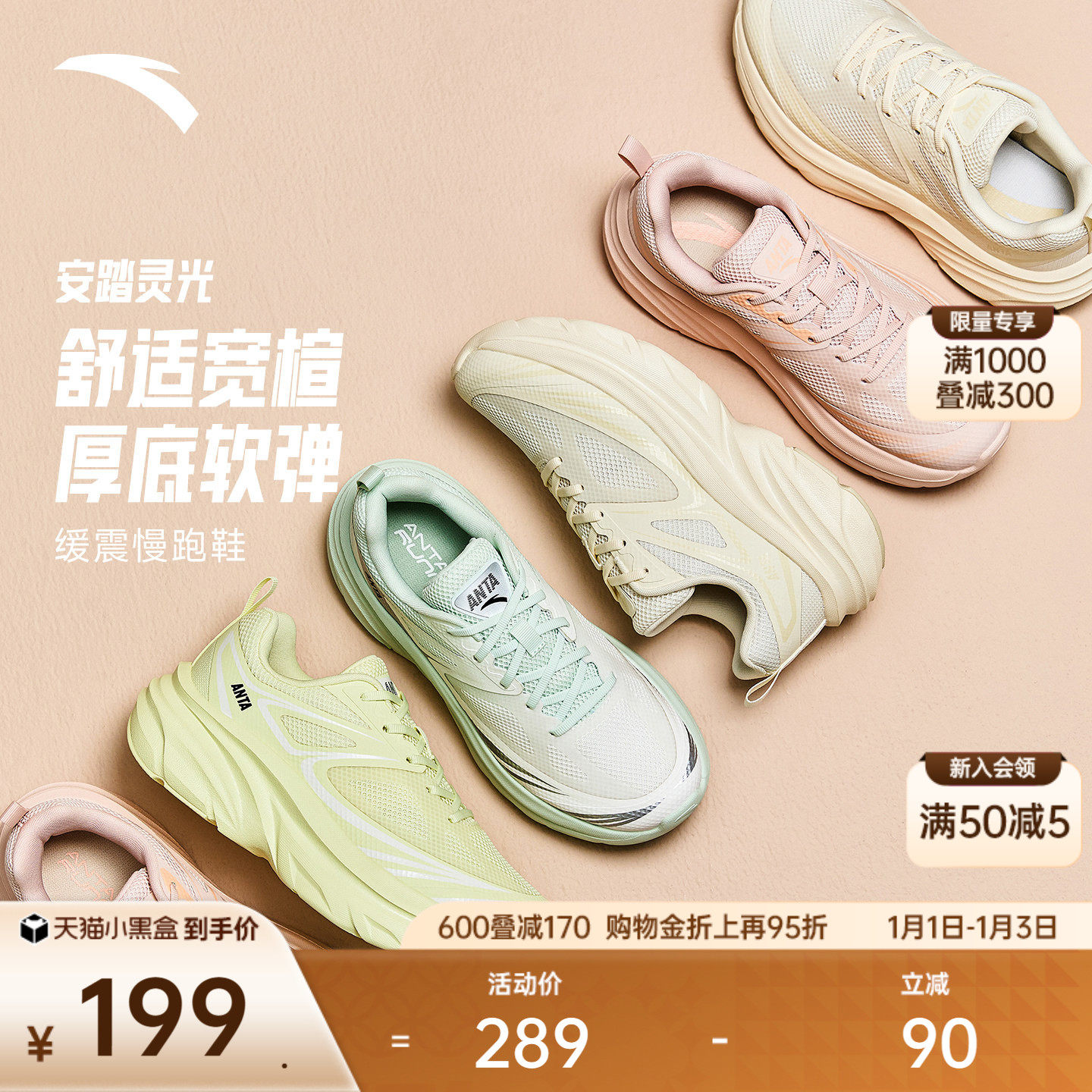 安踏灵光丨宽楦厚底减震跑步鞋女冬季软底舒适跑鞋通勤慢跑运动鞋