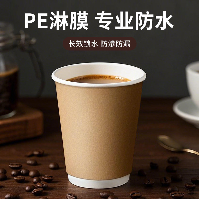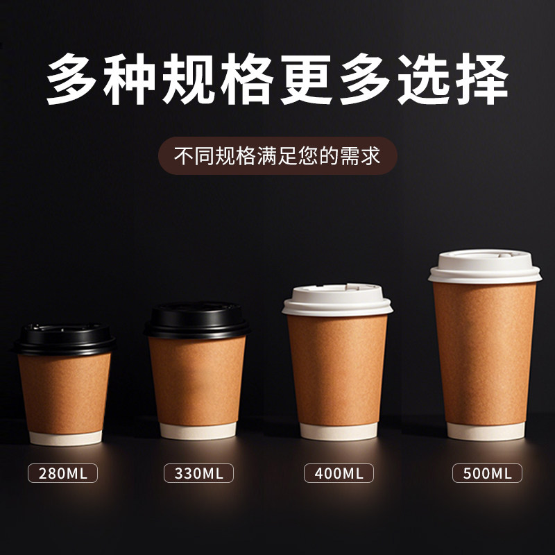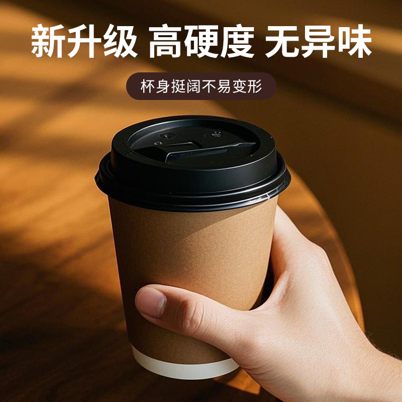 咖啡专用纸杯带盖高级感一次性杯子双层牛皮纸奶茶热饮加厚高颜值