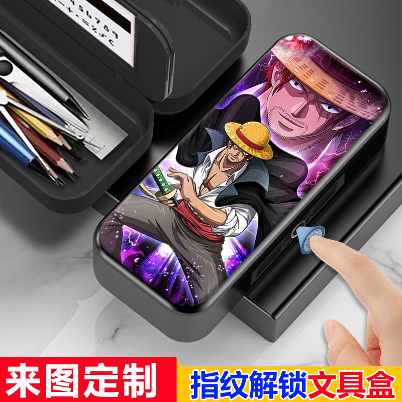 海贼王RED红发香克斯文具盒指纹解锁铅笔盒帅气黑科技定制笔盒男